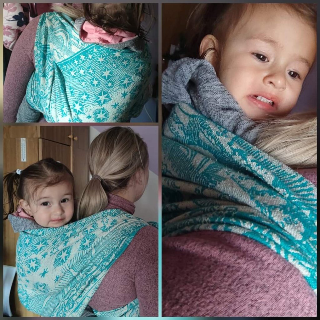 We had a couple of days to try out this wrap, and I must say, I didn’t use that chance and I’m so sorry. I didn’t know it is such a great wrap, one of the greatest I have ever tried. The color is one of my favorites, the design not so much but I can’t say it’s not pretty. But the blend, the feeling when you just hold it in hand, and most of all, when you wrap it up, it’s just like magic! So soft, so moldable, so fluffy on the shoulders, but holds perfectly. Baby is 16 months old and about 10 kg, I didn’t feel her weight at all, and I used it in basic stuff like fwcc and ruck. In one word, perfect wrap for all the time you have to babywear. I loved it and if I have the luck to start babywearing journey again, this will be my diso wrap most definitely. Thanks, Lenine putujuce nosiljke (Lena’s traveling carriers) and Grli Mama for this opportunity, I’m so sorry it didn’t last longer. I warmly recommend!