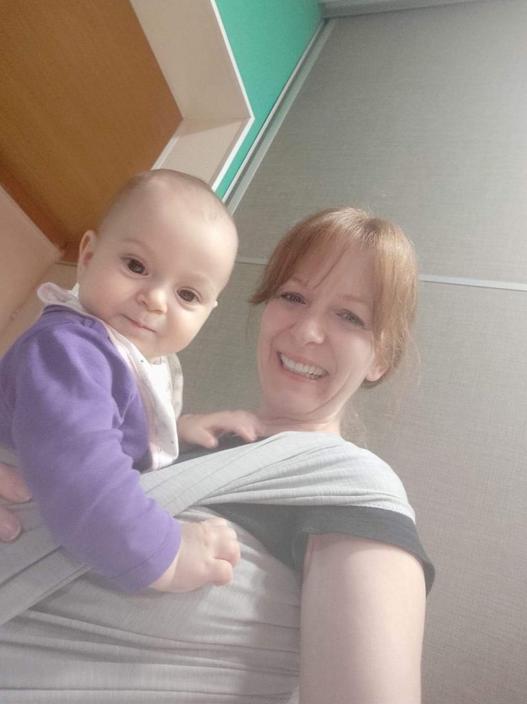 The baby is 4 months and 7.5 kg and this is our first wrap we have tried. I can’t describe the first contact, it was very comfortable. We really enjoyed this wrap. Thanks to Lenine putujuce nosiljke (Lena’s traveling carriers) and manduca we had a chance to try on this amazing wrap.