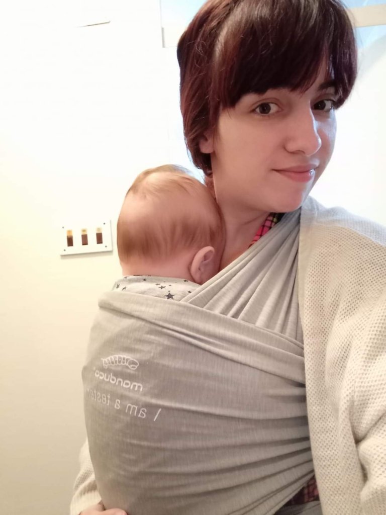 This is the first time i have tried an elastic wrap and in a word i am thrilled. The color is great because it is neutral and not much thick. The baby is 7 months and 7.5kg and we enjoyed making all 3 connections. I’m very sorry that I haven’t tried it before and I recommend it to absolutely everyone because I think it can be worn from birth, even when the baby is heavier. Thanks to the Lenine putujuce nosiljke (Lena’s traveling carriers) and manduca for this opportunity.