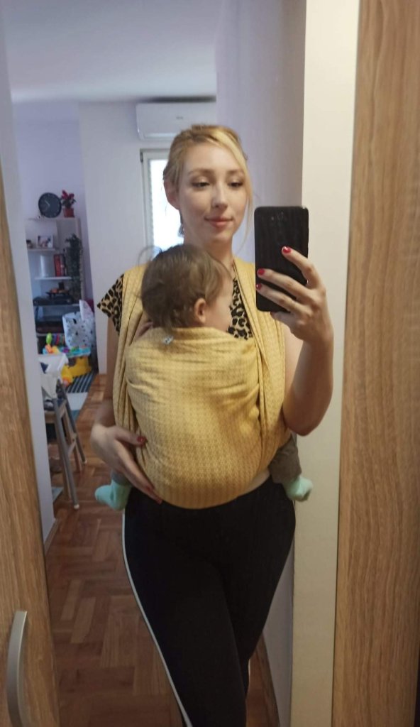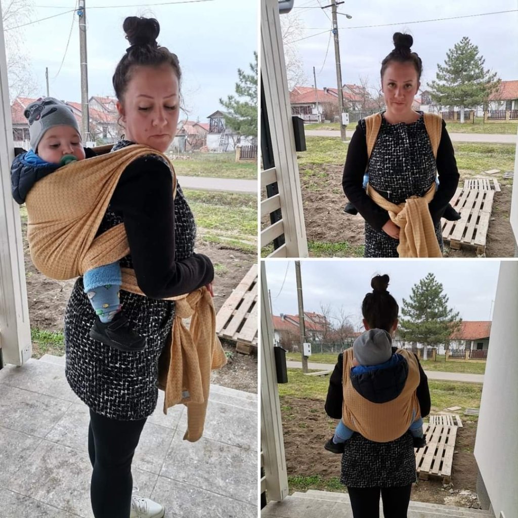 Thank you very much Lenine putujuce nosiljke (Lena’s traveling carriers) and Diso wraps for the opportunity to test Diso Biscous 100% cotton in size 6. This wrap is very comfortable and soft. By the way, I’m not a fan of this color, but I changed my mind while we enjoyed the walk. Now, I really like the wonderful shade of golden color . It is very light and amazing for the whole babywearing period. During the testing period, my girl Nikolina is 18 months old and about 11 kg. I did not feel the weight of my child at all during the long walk and shopping. 😊 💛