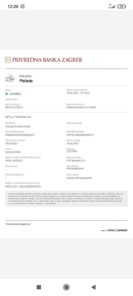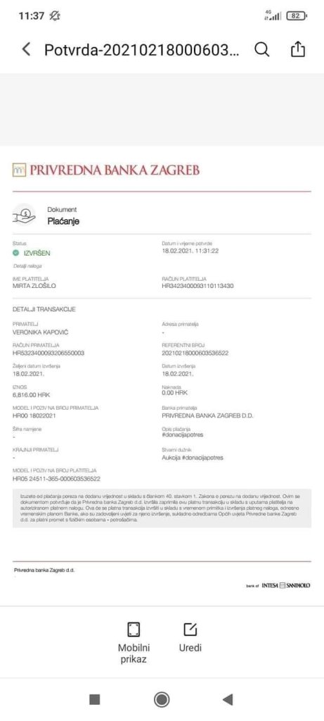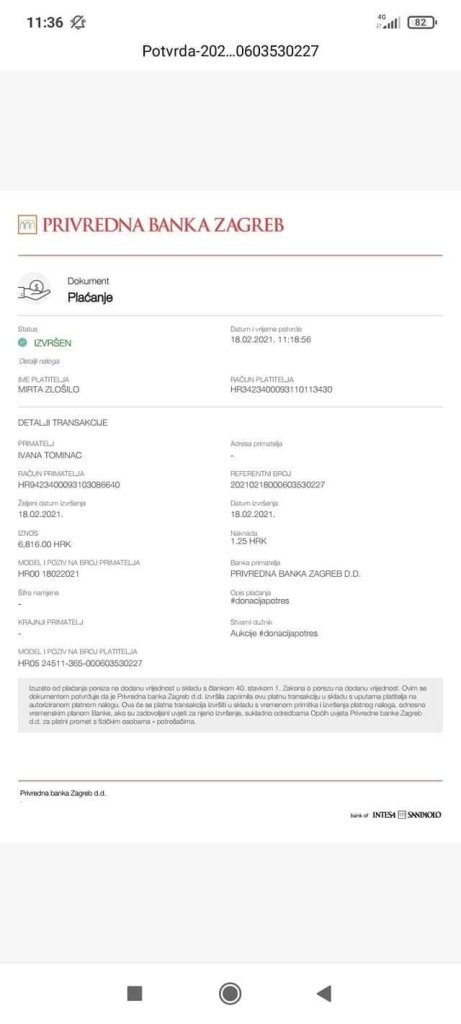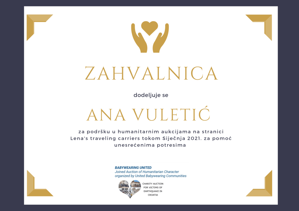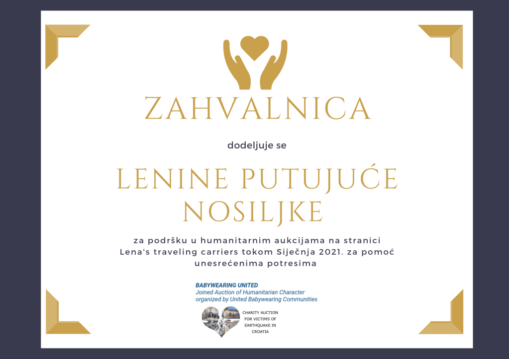 We wish to inform you that today we have officially closed charity Auction. We, as Babywearing United, gathered for 5 families who lost houses during Earthquakes in Croatia the amount of: 4544 euros with the amazing help of the whole community. The whole amount is equally split to 5 families and we are attaching pictures of transactions as a proof.