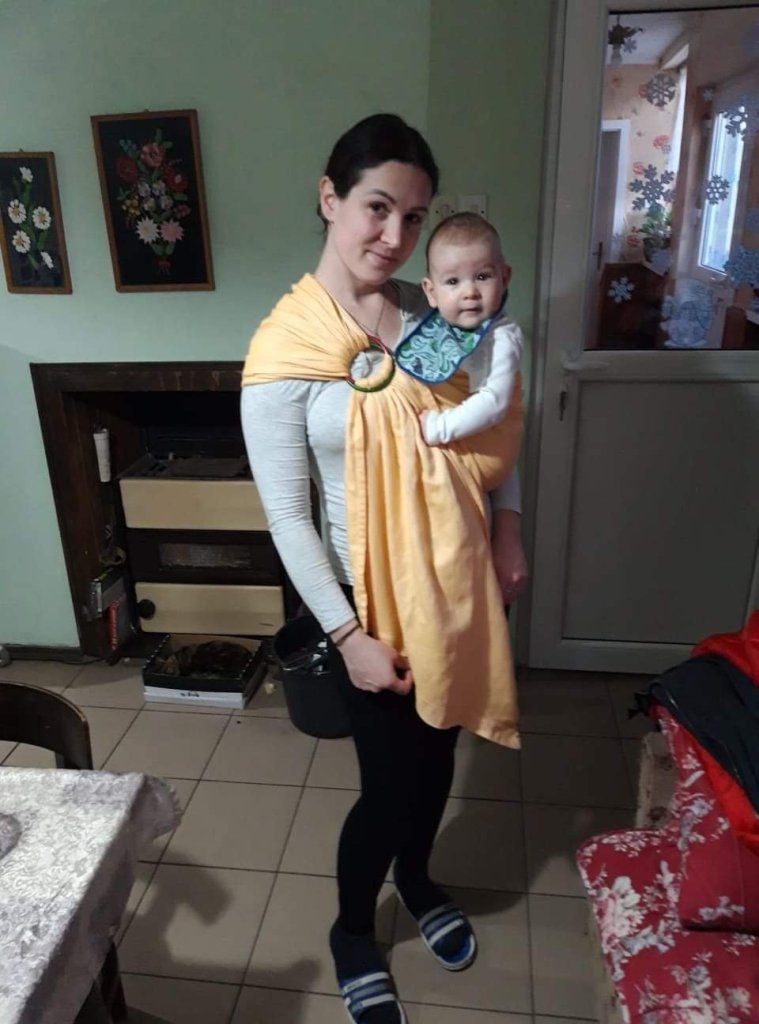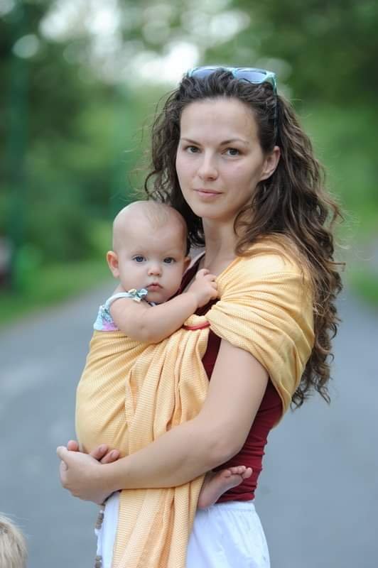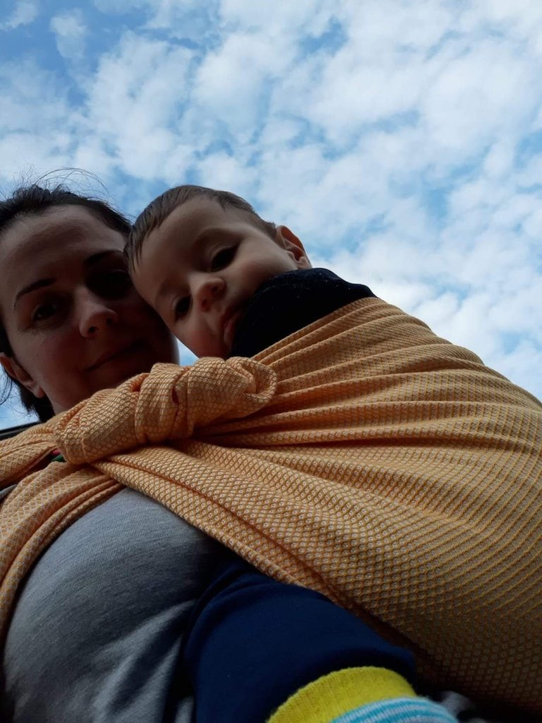 Kamaris ring sling is a great solution for a person who has two and a half year old child, and a baby, such as my self. Free hands are something that i need when we go out together. It is very comfortable, for both of us. Baby often falls a sleep during our walk. We learned to use it quickly, material slides nicely through the rings. It is easy to handle. This is our first time that we tried to use this tipe of carrier, and we had a very nice experience. When the weather is hot, cold or rainy, kamaris ring sling is a warm recommendation. We are grateful for having the opportunity to use this carrier. Thank you “Lena’s travelling carriers”.
