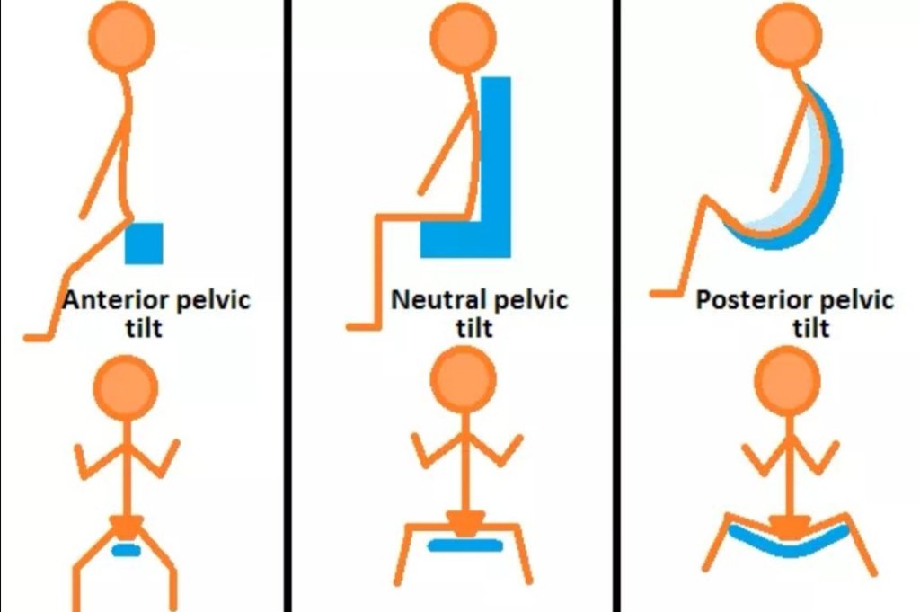 You’re are super relaxed, deep in a seat and struggle to get up from it. Posterior pelvic tilt is when the front of the pelvis rises and the back of the pelvis drops.