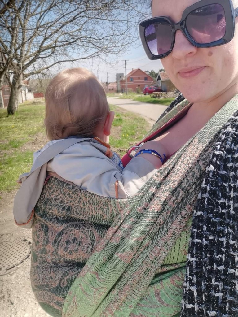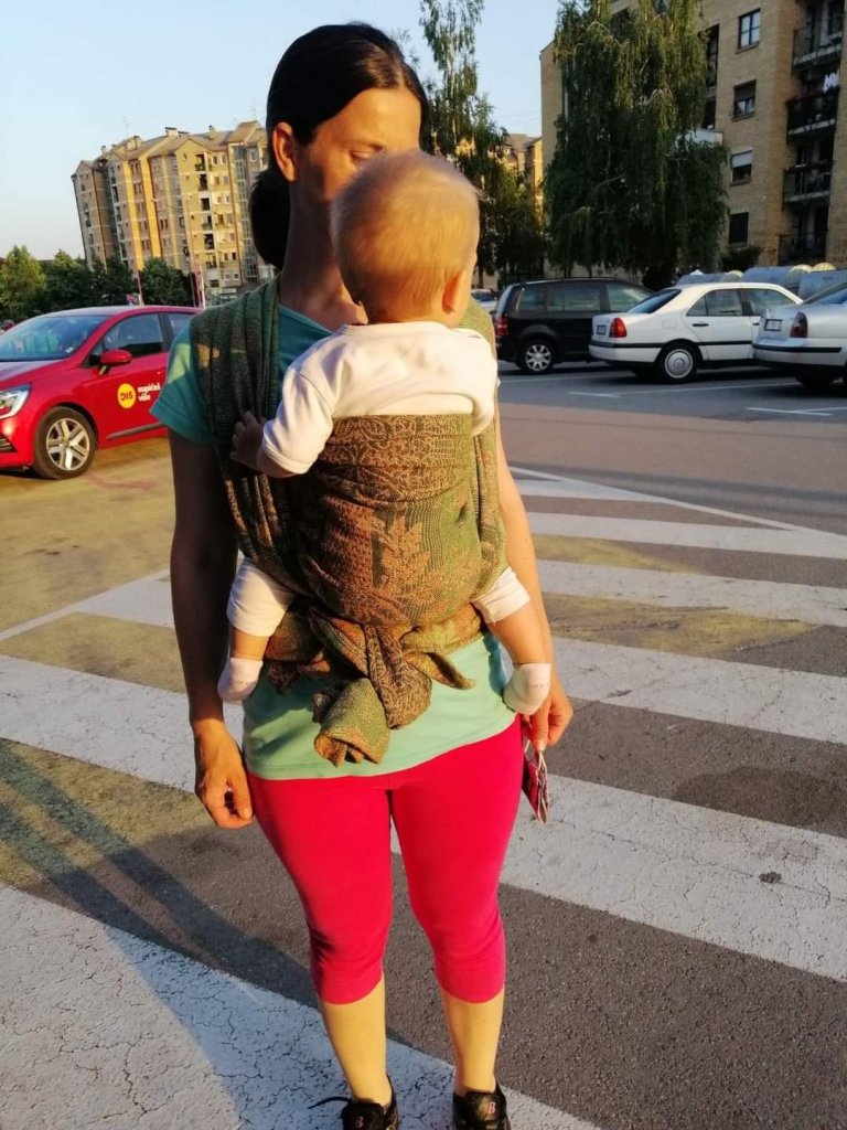 Thanks to Lenine putujuce nosiljke (Lena’s traveling carriers) and Mokosh-wrap, I had an opportunity to try this nice and soft wrap 😊 Honestly, I did not like the design, but I liked how soft was the material 😊 This wrap is not for summer days, but we enjoyed! 😊 My baby has 7 months and about 7 kilos and it was very easy and comfortable to wrap up. Thank you all!