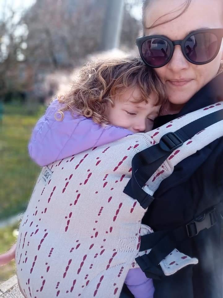 Sorry I’m late for review. First off, I would like to thank Lena’s traveling carriers for opportunity to try this beautiful carrier. So, we have to kids that we carry, older is almost 3 yo, and younger is 9 months old. For both of them adjusting is so easy and it’s just so comfy to carry them. My husband and I are so happy that we can relieve our arms and enjoy walks with our kids.
