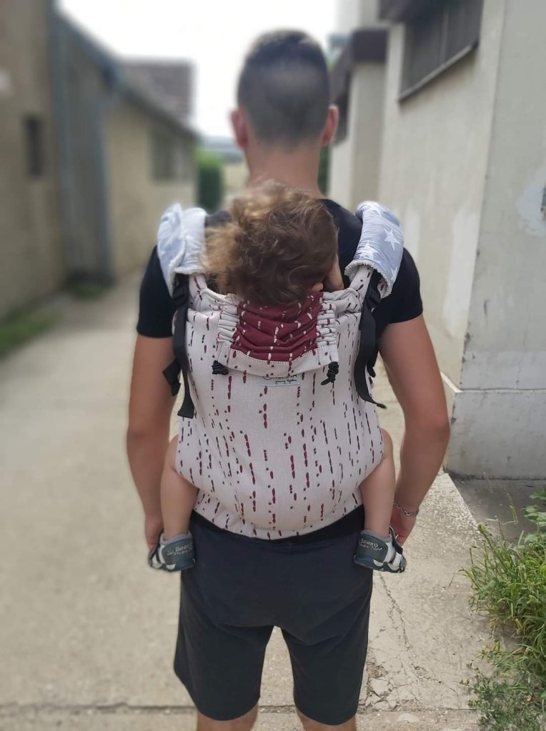 Very beautiful carrier, easy to adjust, soft and comfortable. Although Matija (22 months, 13 kg) doesn’t like being carried so much anymore, he was willing to try this one.