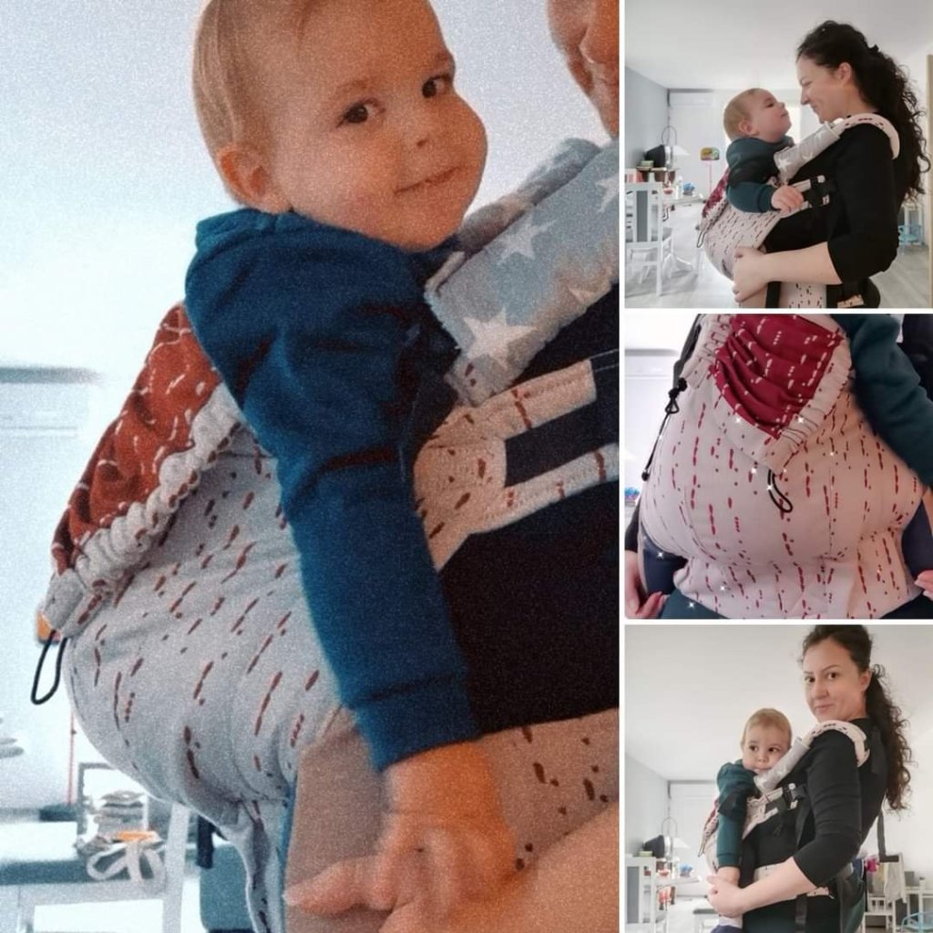 Carrier is like always, comfortable, easy to adjust, soft and really really beautyfull. This one has a posibility to cross straps and bucle them under the baby’s legs, so you get a position similar to the one in a wowen wrap. For me, iz was easyer to carry it normaly. Baby’s on the photo are 9 months, 2,5 years and 4 years. I need to say that iz was comfortable to carry a 4-year old. 🥰