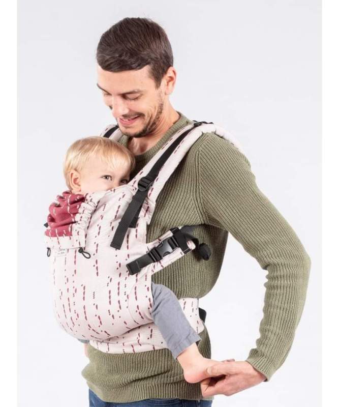 Carrier is like always, comfortable, easy to adjust, soft and really really beautyfull. This one has a posibility to cross straps and bucle them under the baby’s legs, so you get a position similar to the one in a wowen wrap. For me, iz was easyer to carry it normaly. Baby’s on the photo are 9 months, 2,5 years and 4 years. I need to say that iz was comfortable to carry a 4-year old. 🥰