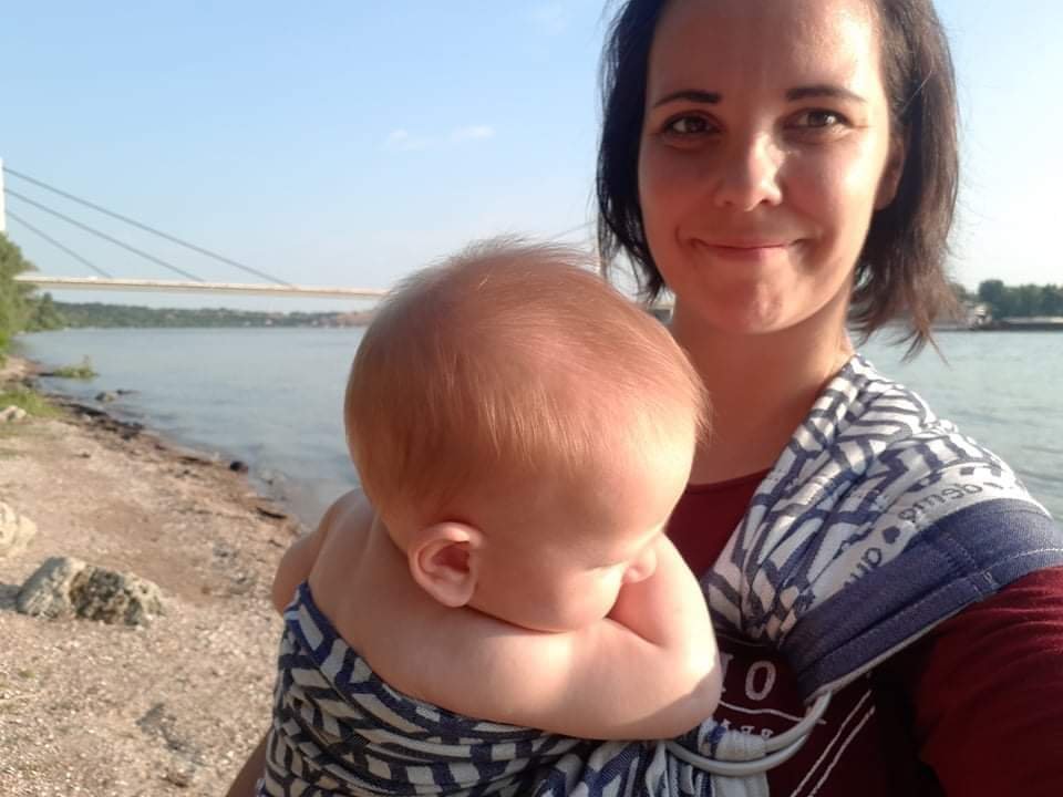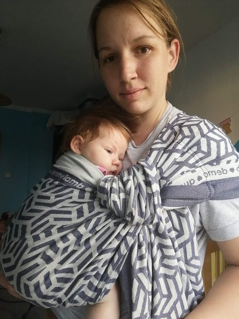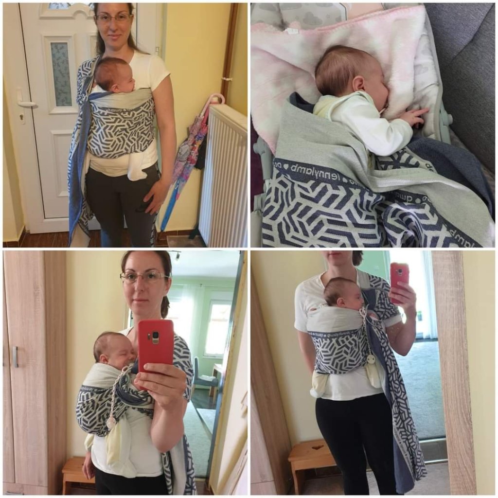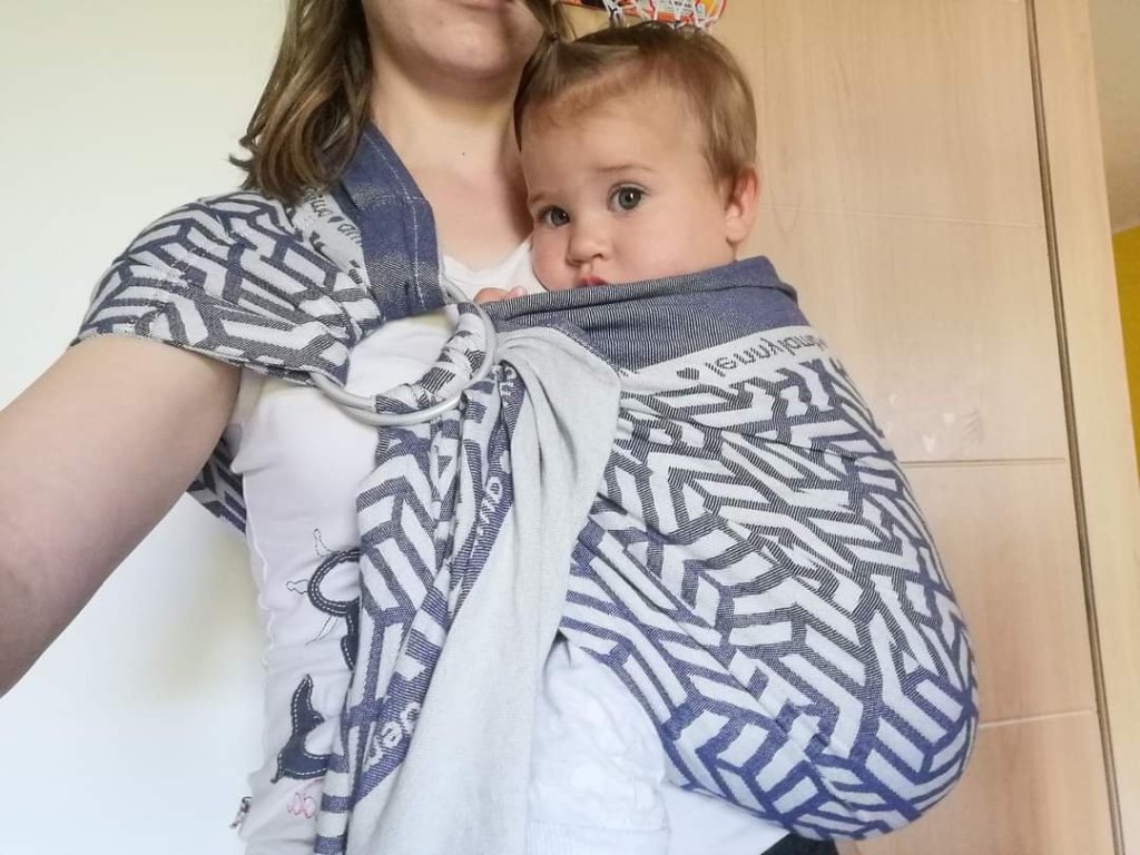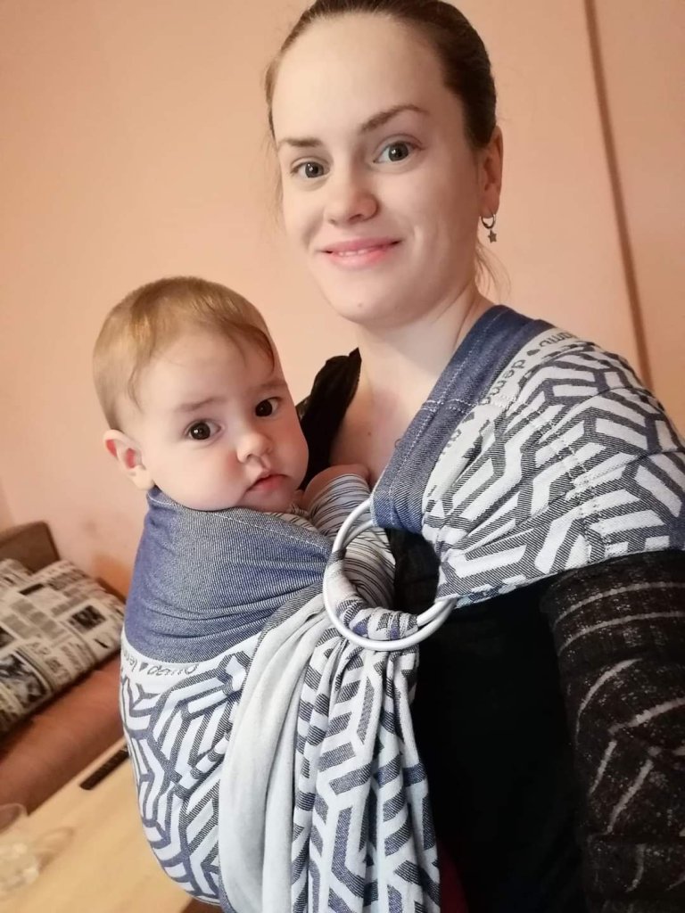 Thanks to Lenine putujuce nosiljke (Lena’s traveling carriers) I had a chance to try my first-ever ring sling: Lenny lamb. I had no problems fitting it, and my 2 months old baby (5.5 kg) liked it from the very beginning. She fell asleep almost as soon as I put her in. The material is extremely soft and slides easily through the rings. I would recommend this ring sling to everyone, and I think that the biggest advantage of it is extremely confortable pleated shoulder with this soft and confortable fabric. 💙