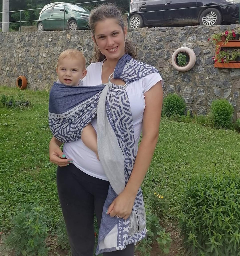 Wow… this ring sling is amaizing in so many ways! This type of shoulder is great, its very comfortable…its my first time trying it. It feels like a hug 😊 Material is so soft and pleasent, even we were a bit hot in it, but its super hot outside so maybe its just it…summer. Material designe is cute and interesting. I didnt like it when I saw in on photos but actually its cute. We really enjoyed wearing. We used it daily. Every recommendation from Oli and mommy! Thank you so much for this opportunity Lenine putujuce nosiljke (Lena’s traveling carriers) and Grli Mama