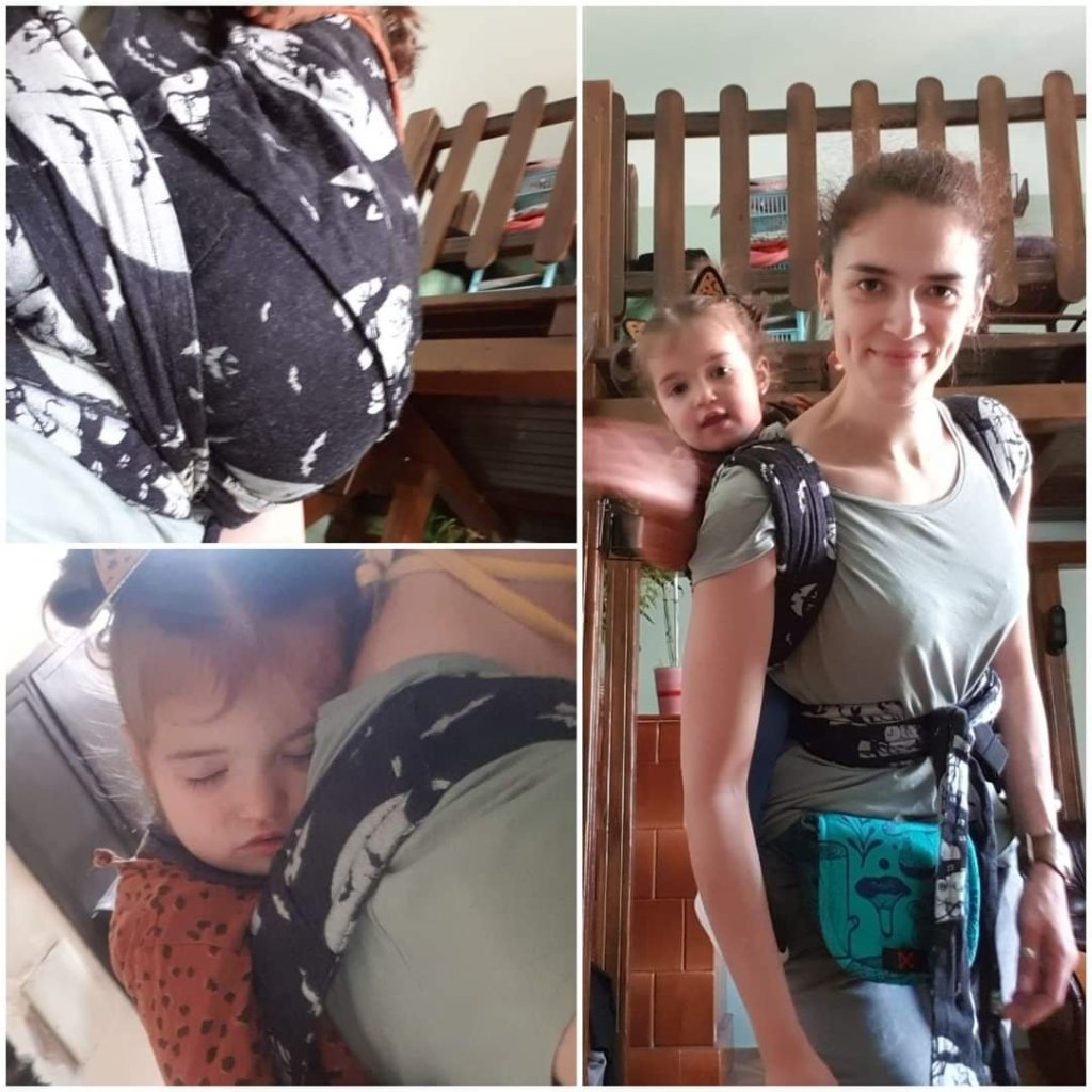 I had the pleasure and the opportunity to try this Ninna carrier with my 21 months old baby girl, who has around 11-12 kg. At first I was really surprised how soft the carrier was. I am not really a fan of half buckle carriers, and I am not so good at wrapping it, I gave my best, but it was really nice and easy to use, so it is a positive experience for us. I only carried her on my back, and it was very comfortable for me and her also. Thank you Lena’s traveling carriers and NINNA CARRIERS BABYWEARING CHAT & BST for the opportunity.