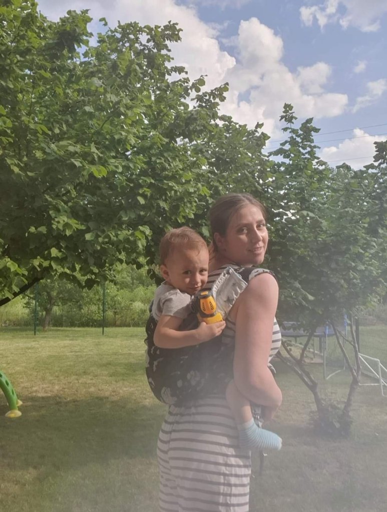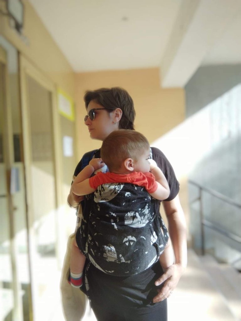 Thanks to Lenine putujuce nosiljke (Lena’s traveling carriers) we had a lovely time testing this Ninna Carrier. It is really soft and easy to put on. My son loved it, an fell asleep in a matter of minutes in it! He is 15 mo and has 11,5kg. Even though the tails looked a bit narrow, double patting on the shoulders made sure a feel of comfort was there both for me and the baby. I have had a herniated disc and a surgery on my back a couple years ago, and regardless I was able to carry him for 2 hours with no pain or discomfort whatsoever! I would give the Carrier 10/10