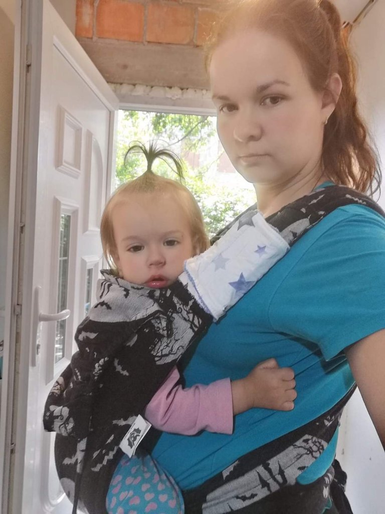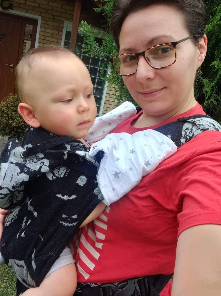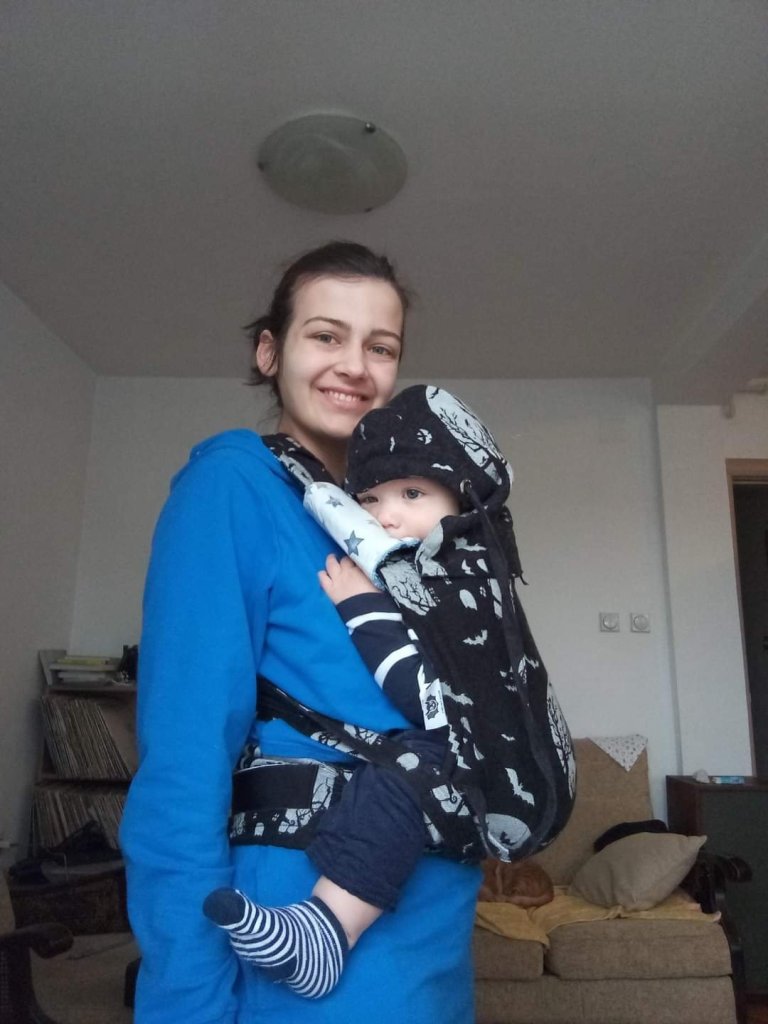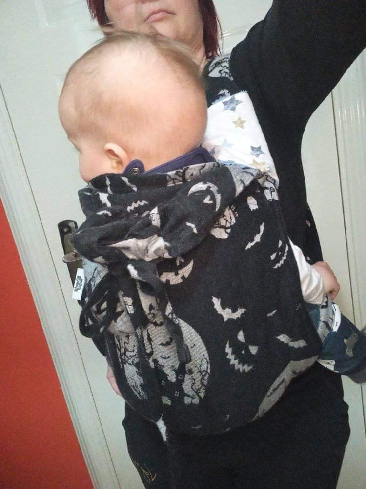 Thanks to Lena’s traveling carriers I had opportunity to test beautifull Ninna halfbuckle carrier in toddler size. My baby is about 9,5kg and 10 months old. The carrier is nice and soft, and I didn’t have any trouble using it. We both enjoyed testing this lovely carrier. I also liked Halloween design. 😄