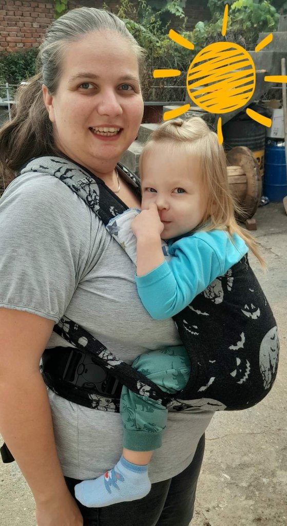 I was glad that we had the opportunity to test this carrier. When my baby was big enough to carry on my back, then a halfbuckle carrier proved to be a very practical carrier because there is no tedious adjustment of the straps, you just tighten the arms of the wrap, which automatically adjusts to you. I also liked the Halloween design with this carrier and with us the carrier was a few days before the holidays. However, I didn’t like the soft belt on this carrier because it twisted when I transferred the child to my back and I wasn’t sure when I was doing it outside without a mirror, that it was positioned correctly.