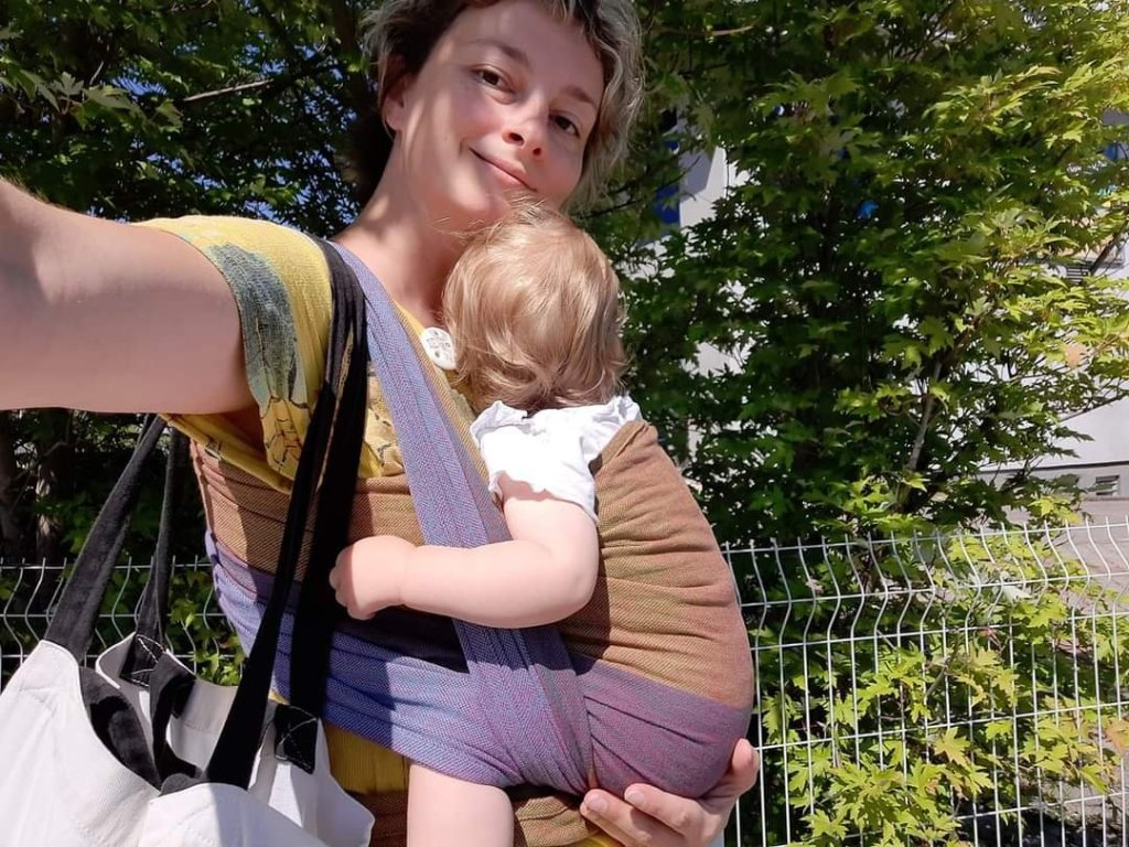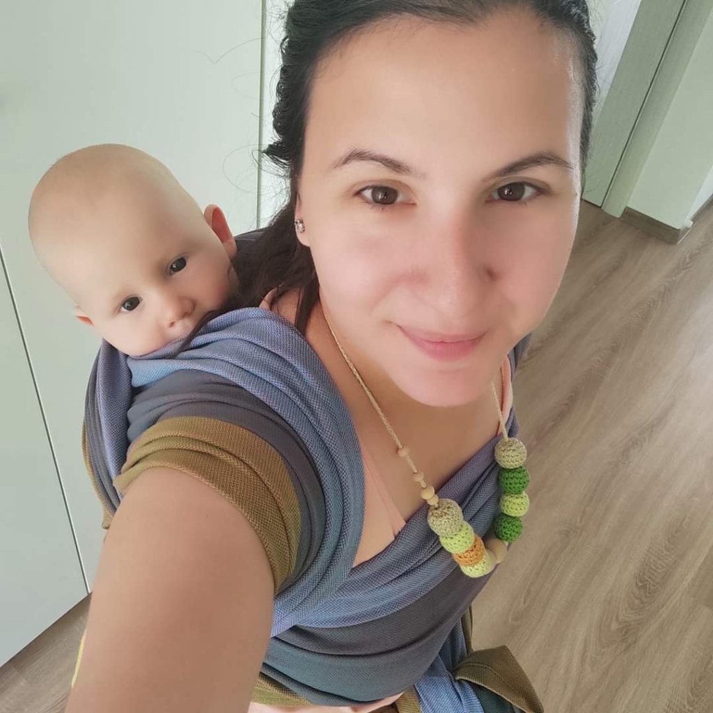Thanks to Lena’s traveling carriers I had the opportunity to test Girasol woven wrap in size, color number 27. This wrap is beautiful and I loved the fact it is handwoven. The colors are beautiful, I love darker, earthy tones. Since I was the first tester, it came brand new so it needs a little breaking in, but at the same time it wraps nicely, it is thin in hand and holds perfectly. Baby tester is 7 months old and has around 9kg. We both enjoyed this wrap very much.