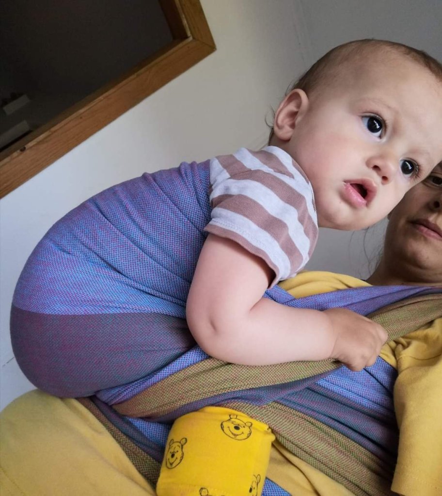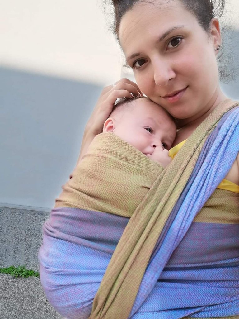 Thanks to Lenine putujuce nosiljke (Lena’s traveling carriers) we have opportunity to test Girasol woven wrap. This wrap is so pretty, soft and beautiful, colours are so adorable, my baby was 8 months old and about 7 kgs, and she like it also! Also, this wrap has to be broken more, for sure ☺️ Thank you! 😊