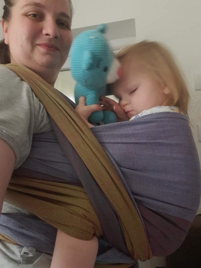 Thanks to Lenine putujuce nosiljke (Lena’s traveling carriers) I had opportunity to carry again my little girl in Girasol woven wrap, color number 27.