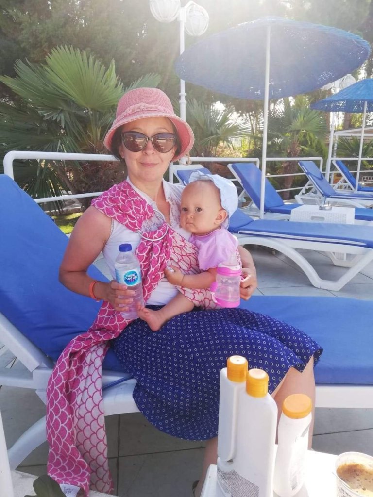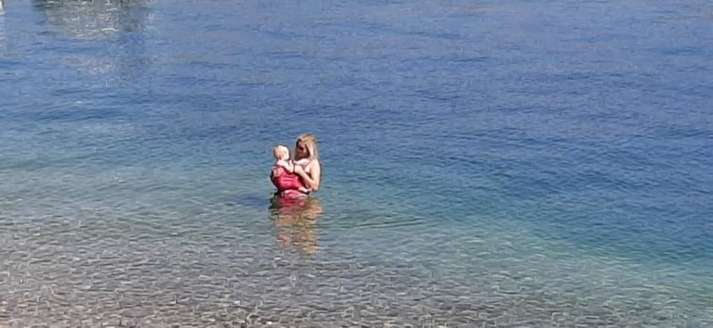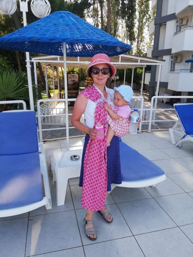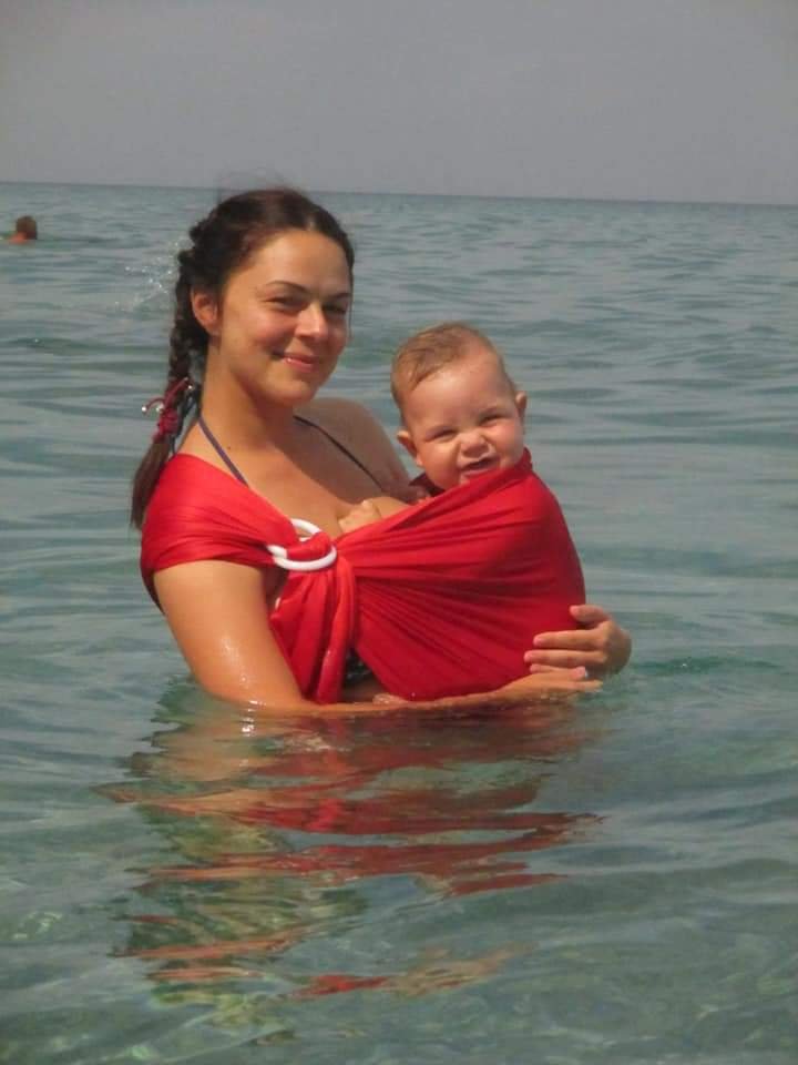 For summer we want to choose natural fabrics those which breath. Linen, merino wool, cotton, ice cotton bamboo… can be good choices. Also there is specially designed water carriers, ring slings and wrap which allow you to go in water with baby attached and minimise stress.