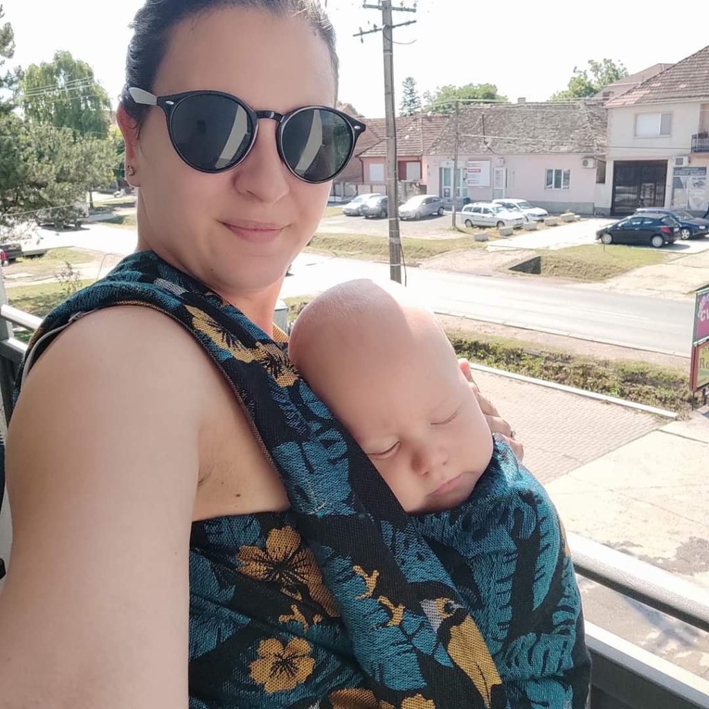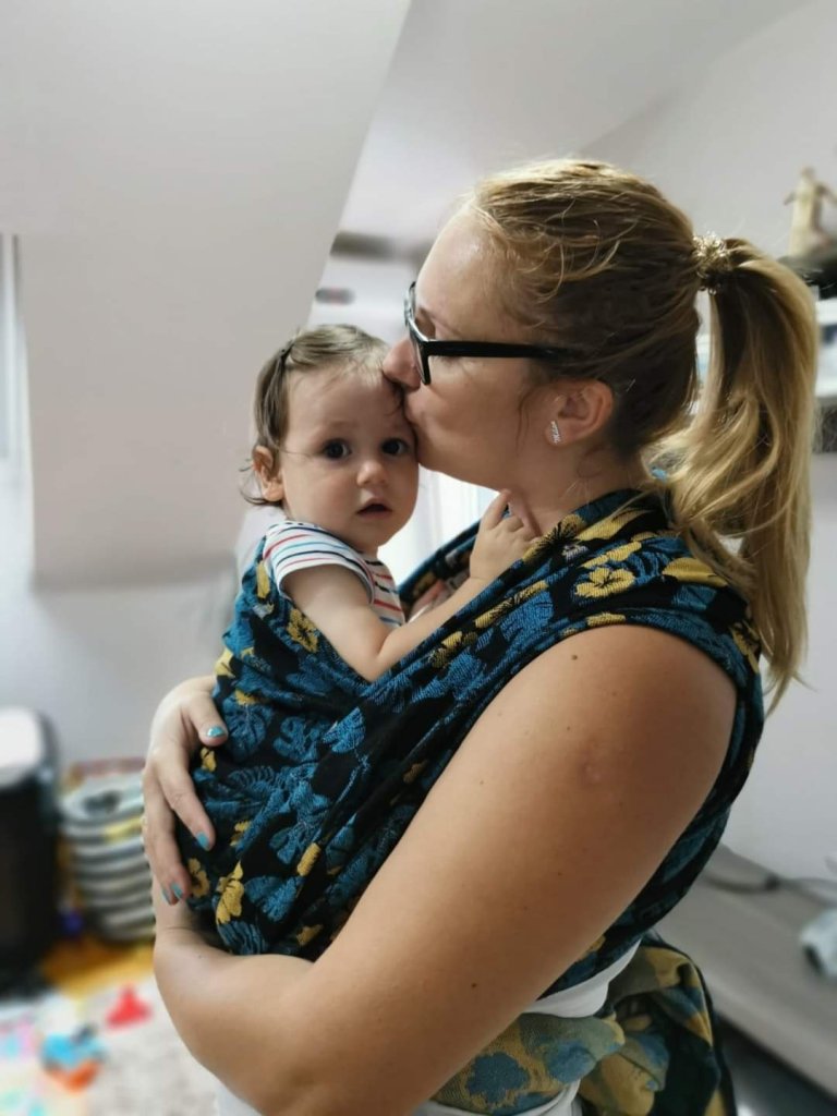 Luckily it was cooler these days when we tested Lolly Wovens Mr. Toucan Cool Jungle wrap in size 6, because it is a bit thicker for really hot weather like +36°C. Nevertheless, the thickness makes it very comfortable, easy on the shoulders and the back of the wearer with toddlers too. It is airy enough, needs a tiny bit of breaking in but it will be soft soon with not much effort. Testee is 17 months old and around 9kg. I love the colours and the design, the blend is pretty interesting too. I’d recommend this for bigger/heavier/older babies, for not so hot weather, and it will be a challenge to try different carries if you are an unexperienced wrapper, but for fwcc and basic ruck it is ok for everybody, it glides nicely but hold good too. Thanks Lenine putujuce nosiljke (Lena’s traveling carriers) and Lolly Wovens for this wonderful opportunity 💚💙💚💙