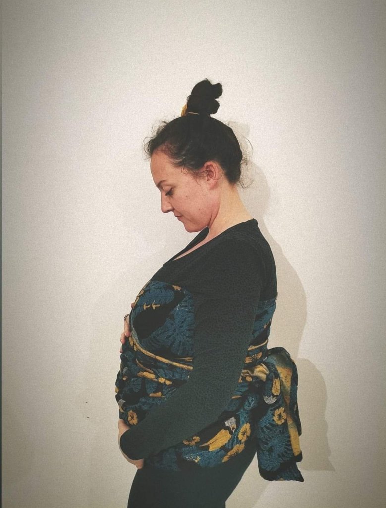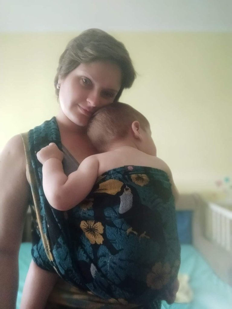 This wrap is wonderful on so many levels. It is thick, pleasant blend and beautiful design. I’m very sorry that I could not carry my 14 kg and 22 months toddler because I believe that it would hold him perfectly both in the front and on the back. I hope we have a chance some other time, now I’m just wrapping my belly and we cuddling with her. Thanks Lenine putujuce nosiljke (Lena’s traveling carriers) and Lolly Wovens for this opportunity.💙🦜