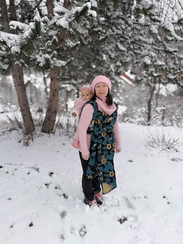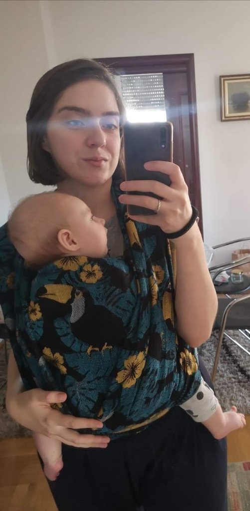 Thanks to Lenine putujuce nosiljke (Lena’s traveling carriers) and Lolly Wovens we had opportunity to try Mr Toucan wrap. Our first attempt to set up was a little bit strange because we are new in babywearing and didn’t had experience. But wonderful advisors from group helped me to find better connection with wrap and to set up correctly. We were enjoying while doing home works and we were walking on our first snow 😍 We have 6 months and cca 8kg, and would recommend this beautiful wrap to everyone.