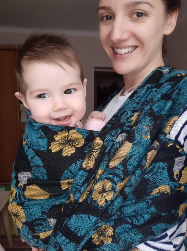 Thanks to Lenine putujuce nosiljke (Lena’s traveling carriers) I had the amazing opportunity to try the Lolly Wovens Mr. Toucan Wrap. To say that I fell in love with it at first wrap is an understatement! I loved the colors, the softness and how easy it was to handle. It felt like I dealt with a thin, feathery wrap that was also strong enough to hold my daughter. Being a beginner in baby wearing, this wrap has made me feel secure to go about my day while wearing my daughter. I would definitely recommend it to anyone, regardless of their experience!