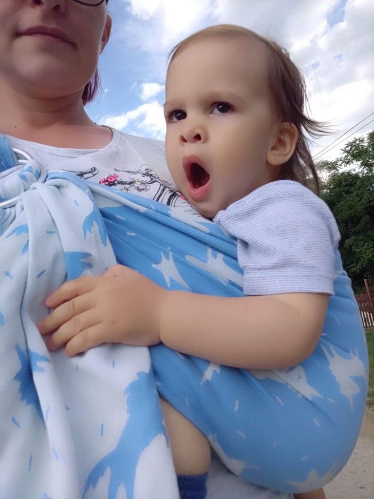 We have a saying here in Serbia, of you don’t know what is good, ask for what is expensive. And it really goes with this one, that’s the first thing I thought when I tried it on. First, the most beautiful of the beautiful blues. Second, totally easy care. I washed it and it’s just the same, soft and cuddly. Third, it sets up by itself. Ok, not really but kinda, I’m not really good at ring slings, but it was the most comfortable ever, I can honestly say. This is one of the most used test carriers in my experience,till now. I enjoyed, my almost 2 years old girl enjoyed, my husband enjoyed a bit peace and quiet, we all enjoyed… Thanks for this one, Ana Anastasijevic Vuletic ,it was magical experience 😘