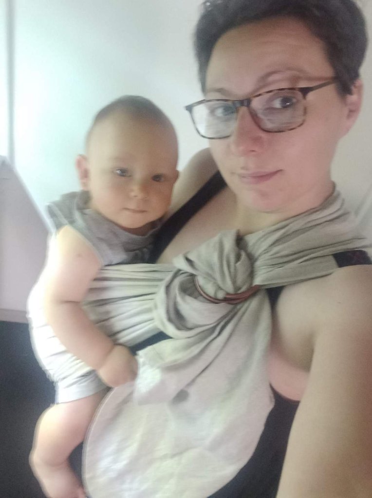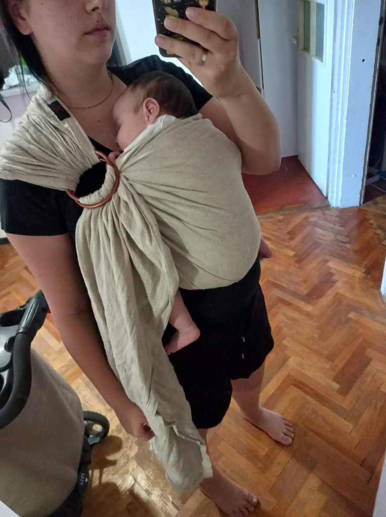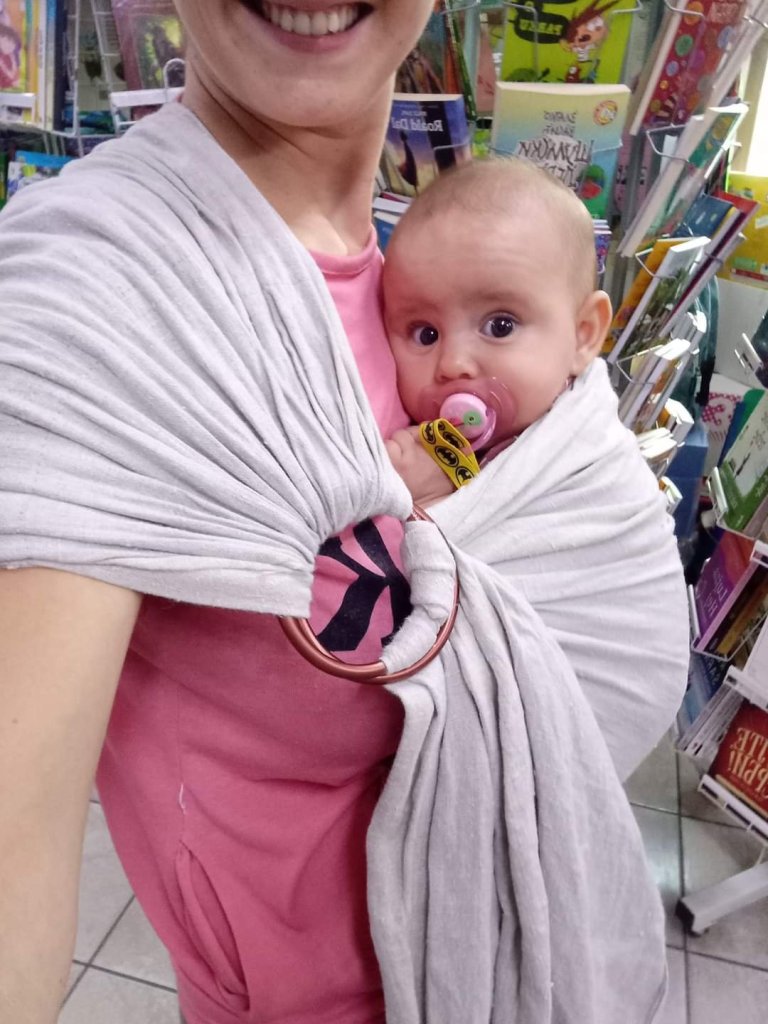 Thanks to Lenine putujuce nosiljke (Lena’s traveling carriers) and DracoMom Carriers Chatter & BST I had the opportunity to test this ring sling.The material is thin and comfortable. I struggled a bit with the adjustment in the shoulder area, but we’ll practice some more.This is our first ring sling amd I’m so happy to try something new.