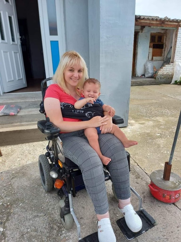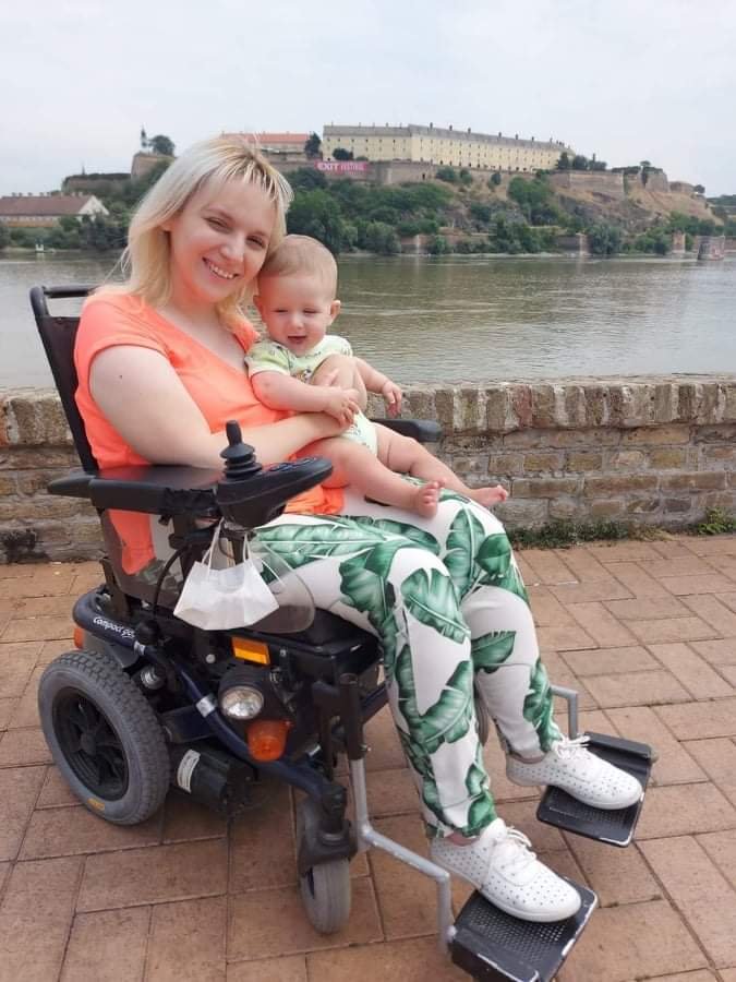 Because it has been emphasized that her hands get tired and painful in this postion but she would rather keep the position as both of them find it comfortable we have suggested ring sling as a stash around them and wheelchair which can be easily tighten and not dependeble and intefiring with weelchair accessibility. Also huge part of choosing was a design of wheelchair itself as it doesn’t have any additional points to tied something on a back and wanted to avoid having extra material around her because not able to fully adjust her self and sitting position could make uncomfortable postion and pressure on a back of mum.