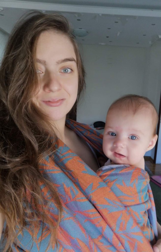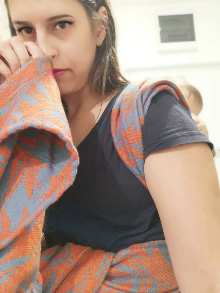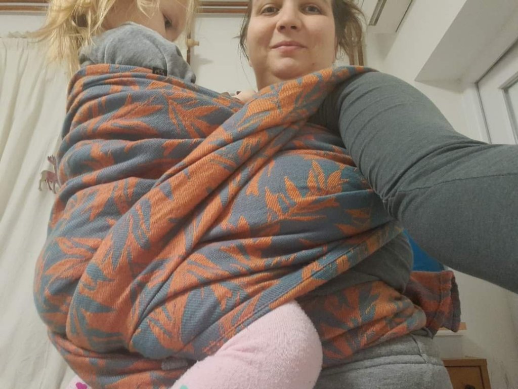 Thanks to Lenine putujuce nosiljke and Kenhuru Sling I had the opportunity to try this so soft on touch wrap. It is super cozy! My 5000g and 2m old baby loved it! It was a bit too thick to wrap for my abilities so I will recommend it to slightly more experienced wearers and I might even get back to it. 🙂