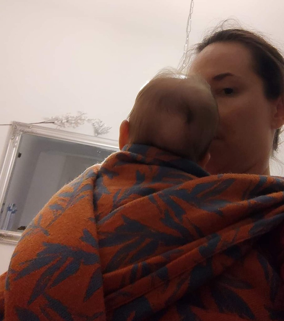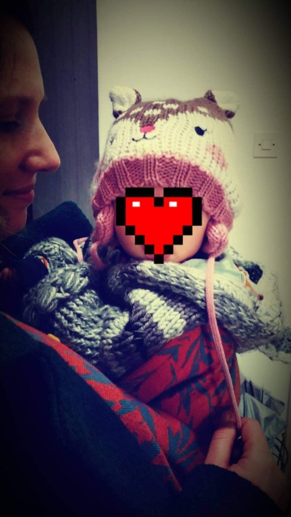 When it came first, I was confused since I thought I’m testing woolen wrap and Rocco is so soft and cushy. And then I checked, it does have wool but it’s not itchy, at all! Zero! And then I was amazed. I wanted to use it as a scarf first 😂 But then, I pulled myself together and my head out of the cloud and wrapped the baby. The baby is 6 months old, 8,5 kg so a heavy lifter. The wrap is easily wrapped, moldable, equal amount of grip and glide. It wasn’t a problem to tighten it, easily, from the first shot. It’s also gentle on the baby, giving enough, yet not too much mobility (that’s why it’s easily tightened).