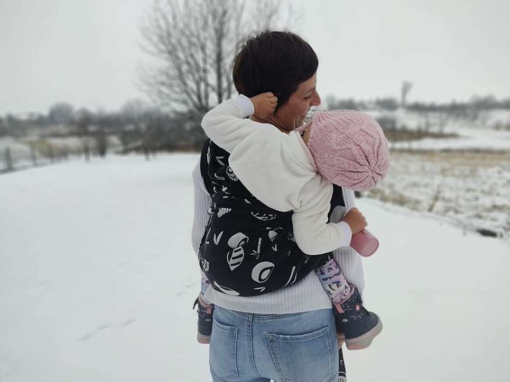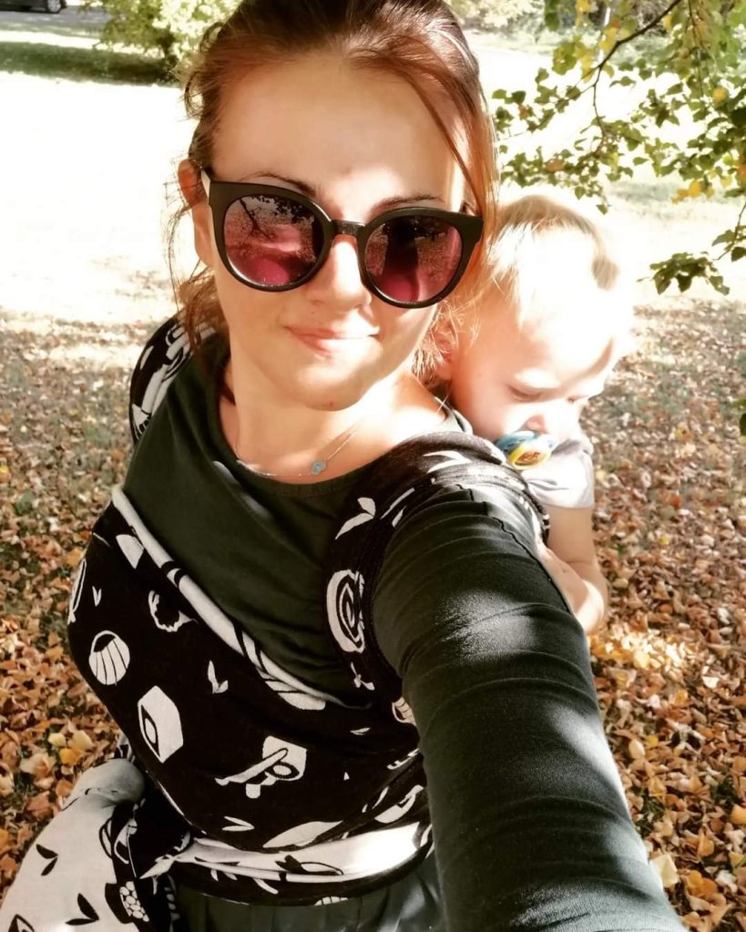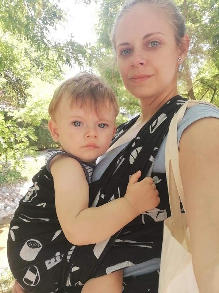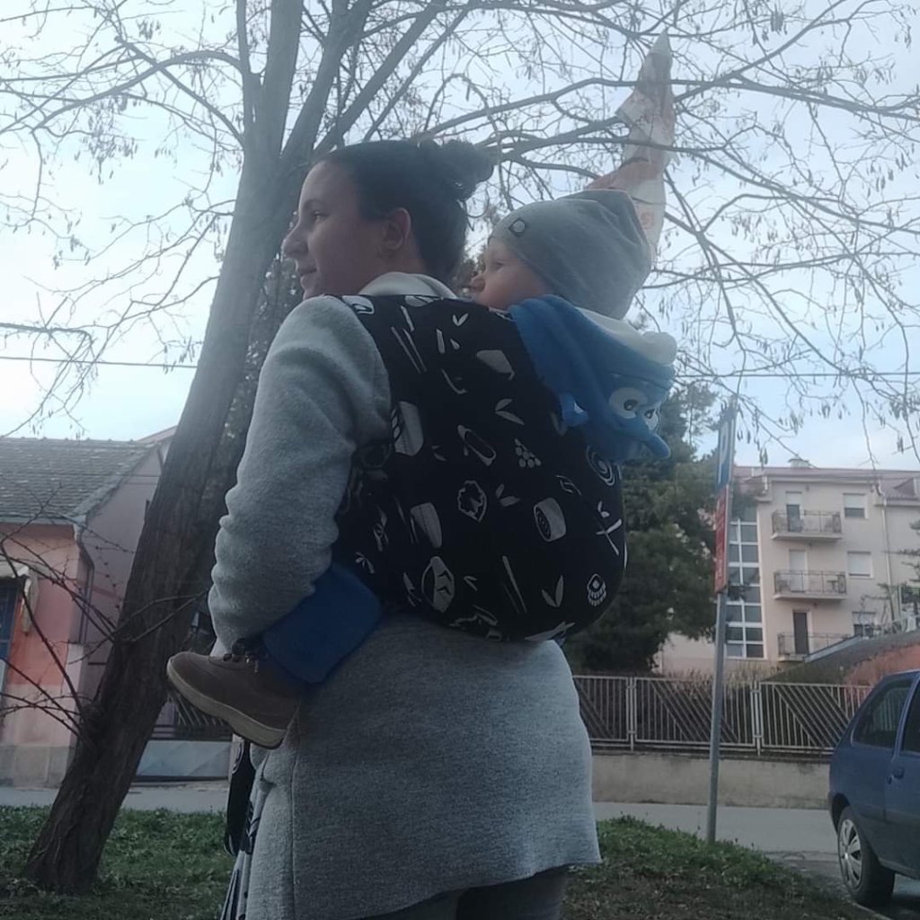 Thanks to our Lena’s traveling carriers and Mirta Zlošilo, at the end of our BW journey we had the opportunity to try two monochrome woven wraps. The kid is soon to be a 2-year-old toddlerina, weighing 11 kg. I can’t boast of experience in various finishes (lack of dexterity), so we tested the wraps in basic front carries.