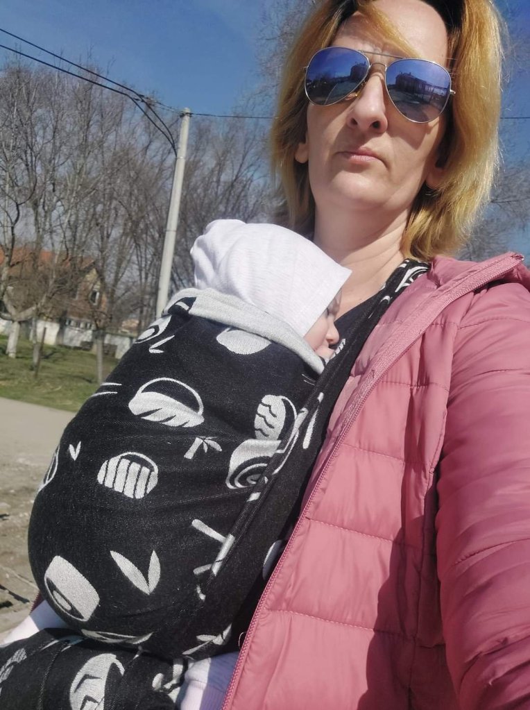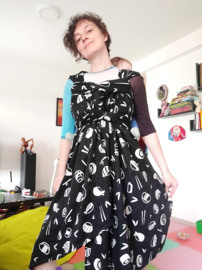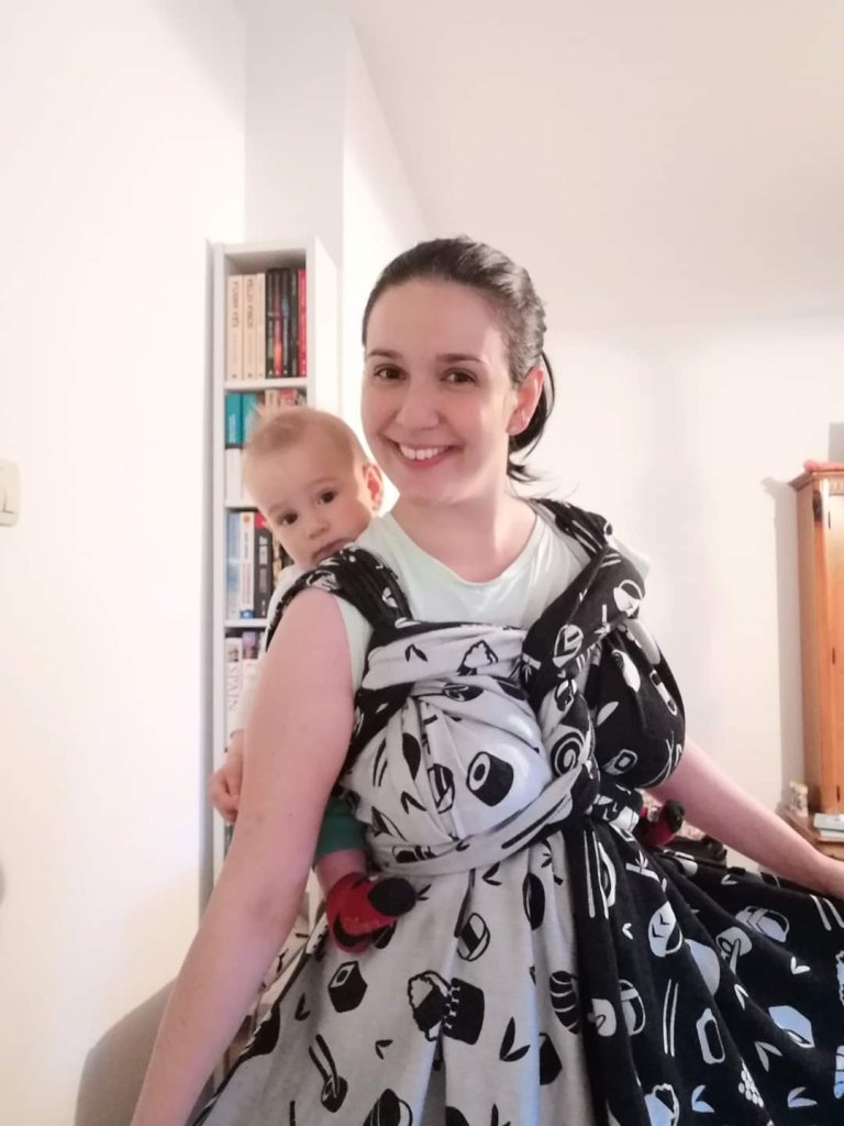 Thanks to Lenine putujuce nosiljke (Lena’s traveling carriers) and Lolly for this opportunity. I have tried this wrap with my baby girl, who is 4 months old and about 5kg. I’m not the sushi lover, so the design was not particularly pleasing for me, but the blend is magnificent, and we really enjoyed. The wrap is moldable, pleates beautifully on the shoulders, very comfortable and holds great. All in all, I recommend, we loved it.