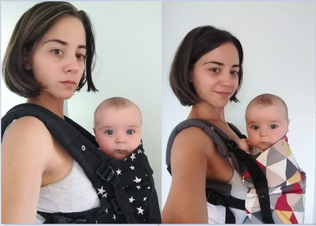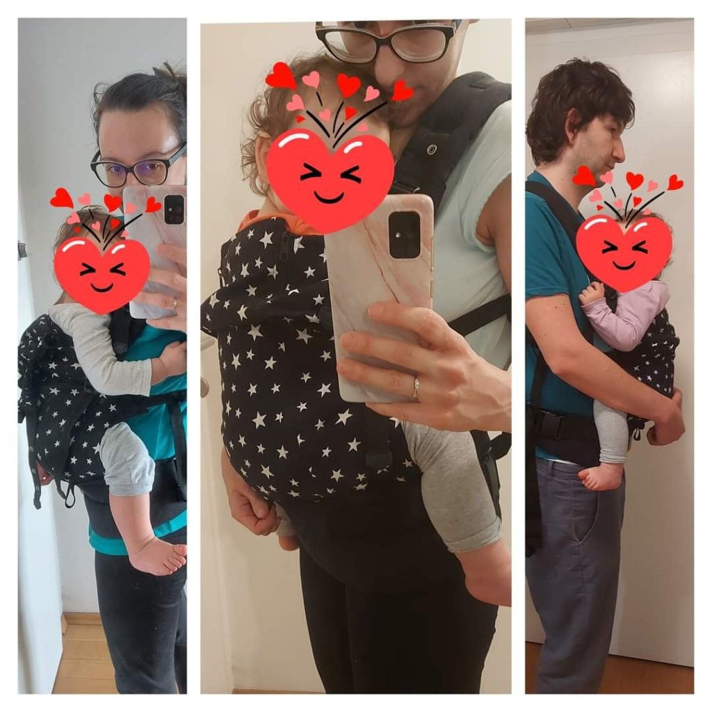 I tested both the De Novo (stars) carrier with mesh and the Close 2 Heart carrier (triangles) with my 4,5-month-old baby who weighs almost 8kg. Both carriers were very comfortable and provided sufficient options for fine-tuning the straps. I am quite short (155cm) so I like the fact that you can cross the straps on the De Novo carrier, although the standard option suited me as well. My goal was to find a carrier for the summer and I must say that the mesh really helps. I did have some difficulty adjusting the panel length, but after several attempts and some guidance, I managed to set it just right. In the end the testing process resulted with my ordering of a wrapster carrier with mesh and cover ❤