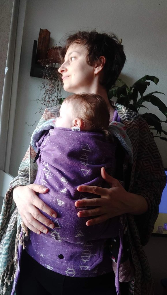 Dear and adored Ninna Carriers ❣️❣️❣️ Love at first touch, adjustment and hug❣️Ninna makes fantastic very comfortable carriers, very easy to adjust. Really good feeling when wearing❣️ The carrier is the right choice and it’s really comfortable. The woven bandage from which the entire carrier is made is soft, durable and breathable. So I believe it would be comfortable and pleasant even in high temperatures. The baby is 7 and a half months old, slightly more than 7 kg and 62 cm. When setting it up, I realized that the carrier would be suitable for a smaller baby as well as for a much bigger one. This carrier is characterized by comfort and pleasant wearing. We were honored to meet the magnificent Ninna Carriers again thanks to Lena’s traveling carriers . We spent a lot of time in the carrier and often the baby feeds on the breast where the hood appears on the scene and the feeding becomes intimate.