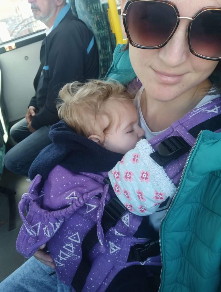 Thanks to Lenine putujuce nosiljke (Lena’s traveling carriers) I had the opportunity to test the wonderful Ninna Carriers Go Grow carrier. The strong belt was very comfortable on my back, the panel is soft enough that it can be folded and more than the velcro allows. Iva could turn in it, play, but also get a good nap. At the time of testing, she was 9 months old and about 9kg. Thank you once again for this wonderful opportunity to wear Ninna carriers perfection. 😍💛