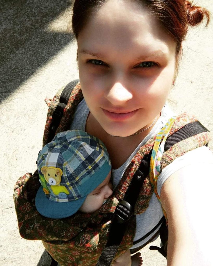 #almitratattivaThanks to Lenine putujuce nosiljke (Lena’s traveling carriers) and Almitra Tattva- Babywearing Art Studio I had the opportunity to try Henna Yoga carrier.