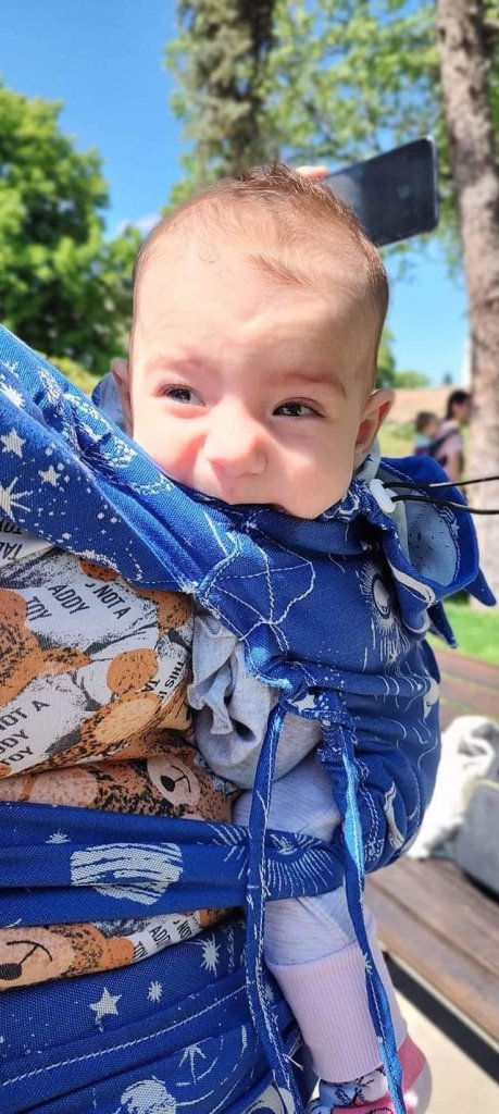 We had the opportunity to use the Elna Blue Planet half buckle carrier (baby size) through the LPN group (our baby is 4 month old/weights 6.5kg). We used it mostly around the apartment and for short(er) walks. Once the adjustment is mastered (it’s not complicated), it’s quite smooth. The material itself is soft and pleasant, the belt is firm, and the straps are nicely padded. The panel is quite flexible, so the baby has enough space to turn and look around from both sides. The only inconvenience for us is that the baby was very impatient at the beginning until we set everything up and go outside, and that outside we always have to make sure not to get the carrier dirty (so that the strapping part itself does not drag on the floor while placing the baby). The design is just stunning! I recommend trying.