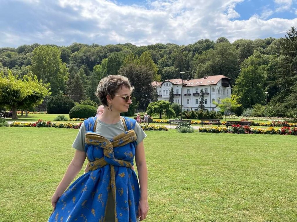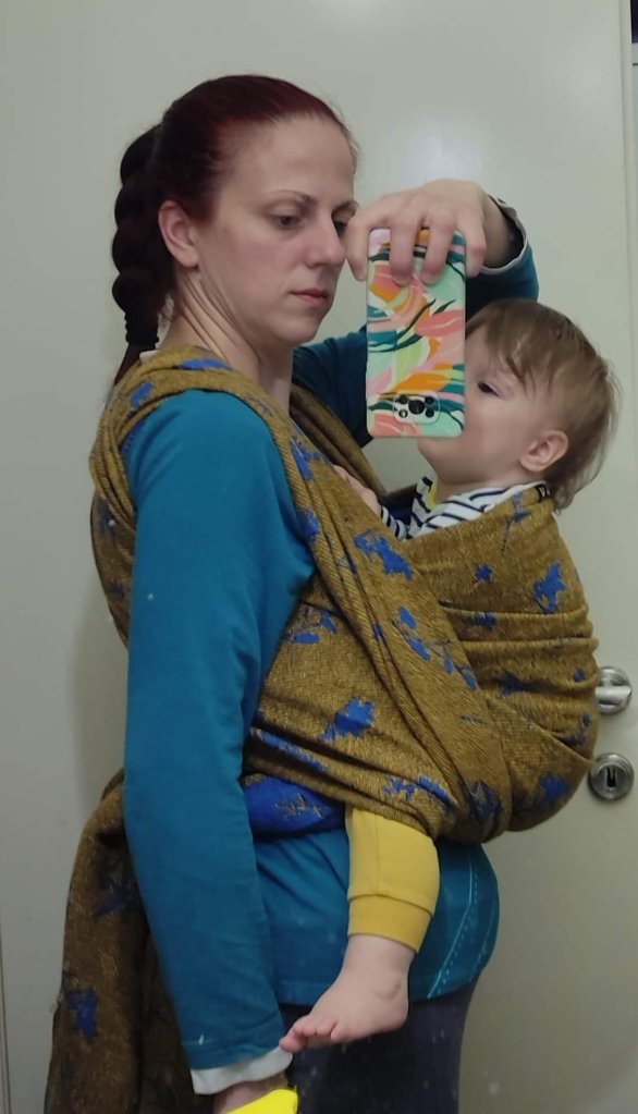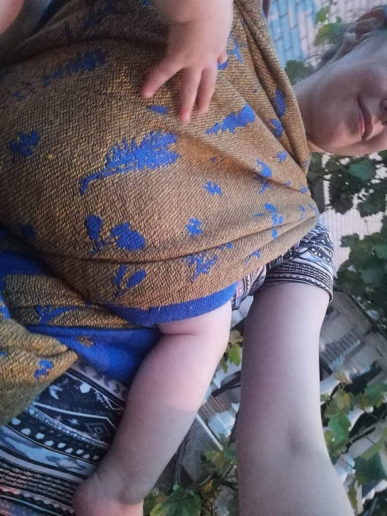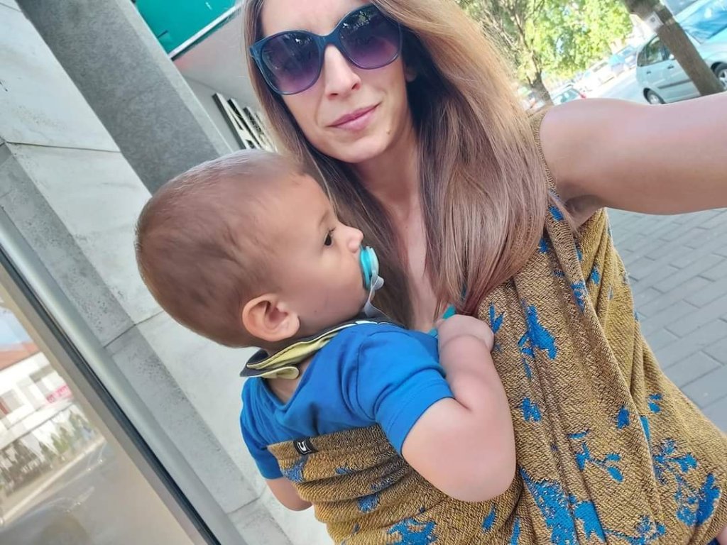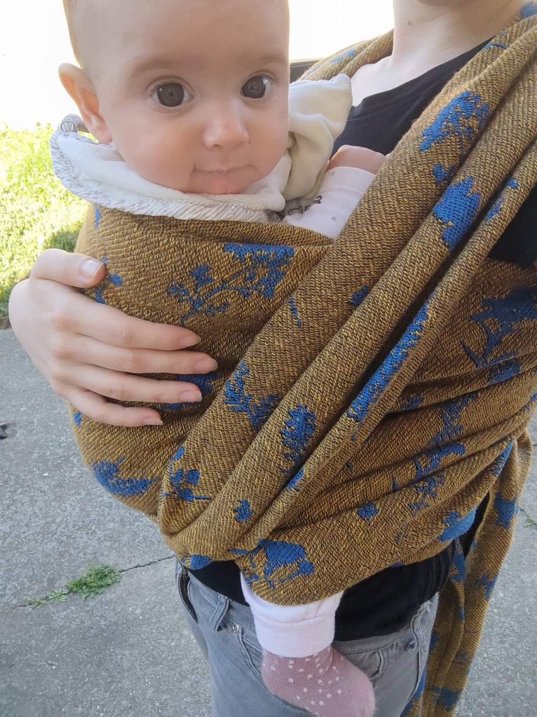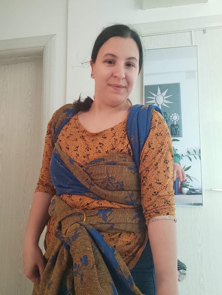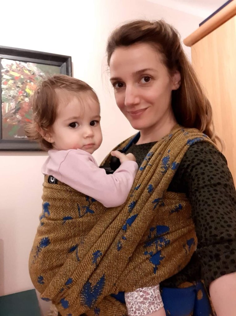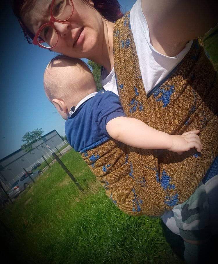 Thanks to Lenine putujuce nosiljke (Lenine putujuce nosiljke (Lena’s traveling carriers)) and Luluna Slings we had the opportunity to test this beautiful wrap – Luluna Herbs Golden Water size 7. This wrap is perfect for automn, by its colors, thickness and name. 🙂 It is also very easy to use, holds baby very well. My baby is 10 months old and has around 11kg, and the wrap didn’t move an inch during our walk. Thanks for this very pleasant experience. ☺️