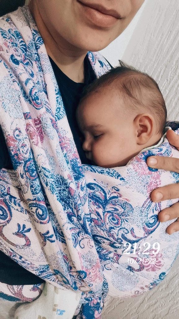 Thanks to Lenine putujuce nosiljke (Lena’s traveling carriers) and Yaro Slings, we had an opportunity to test this beautiful wrap. Baby is 4 months old and weighting 8kg.