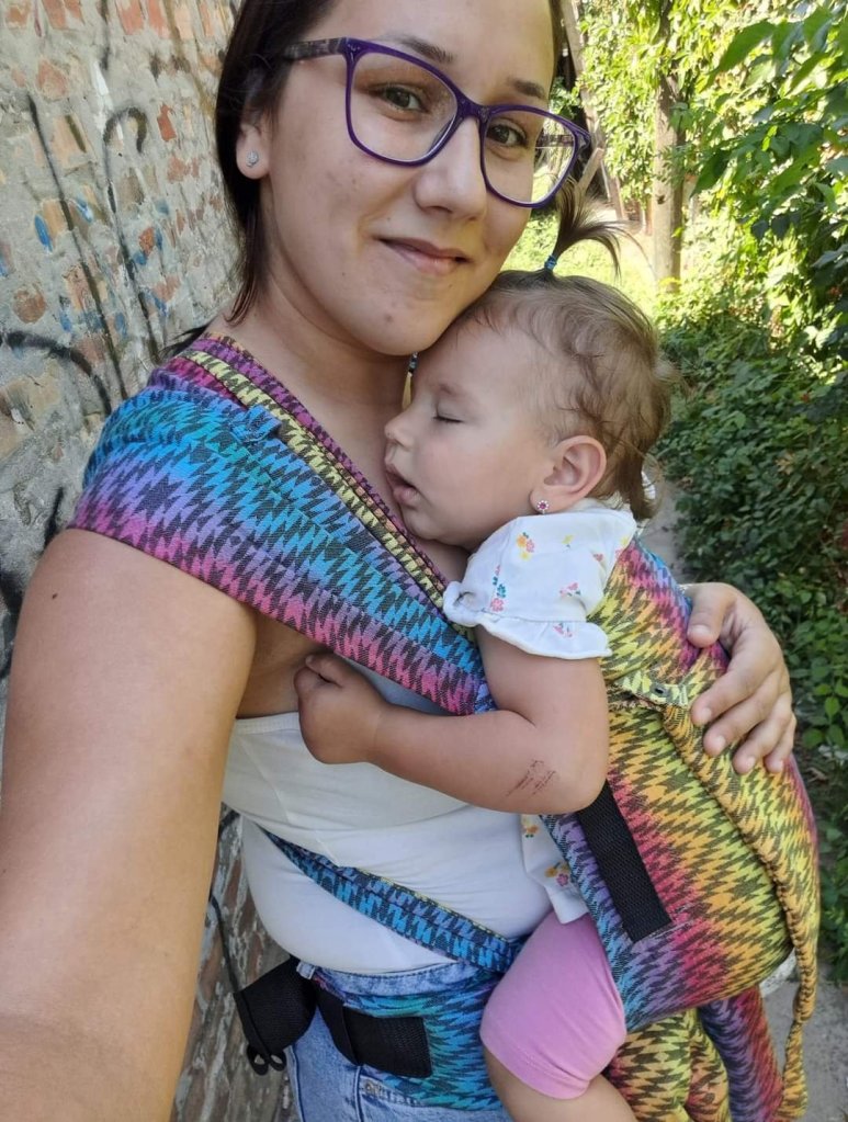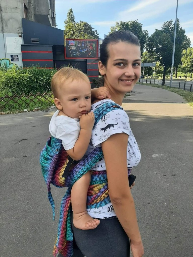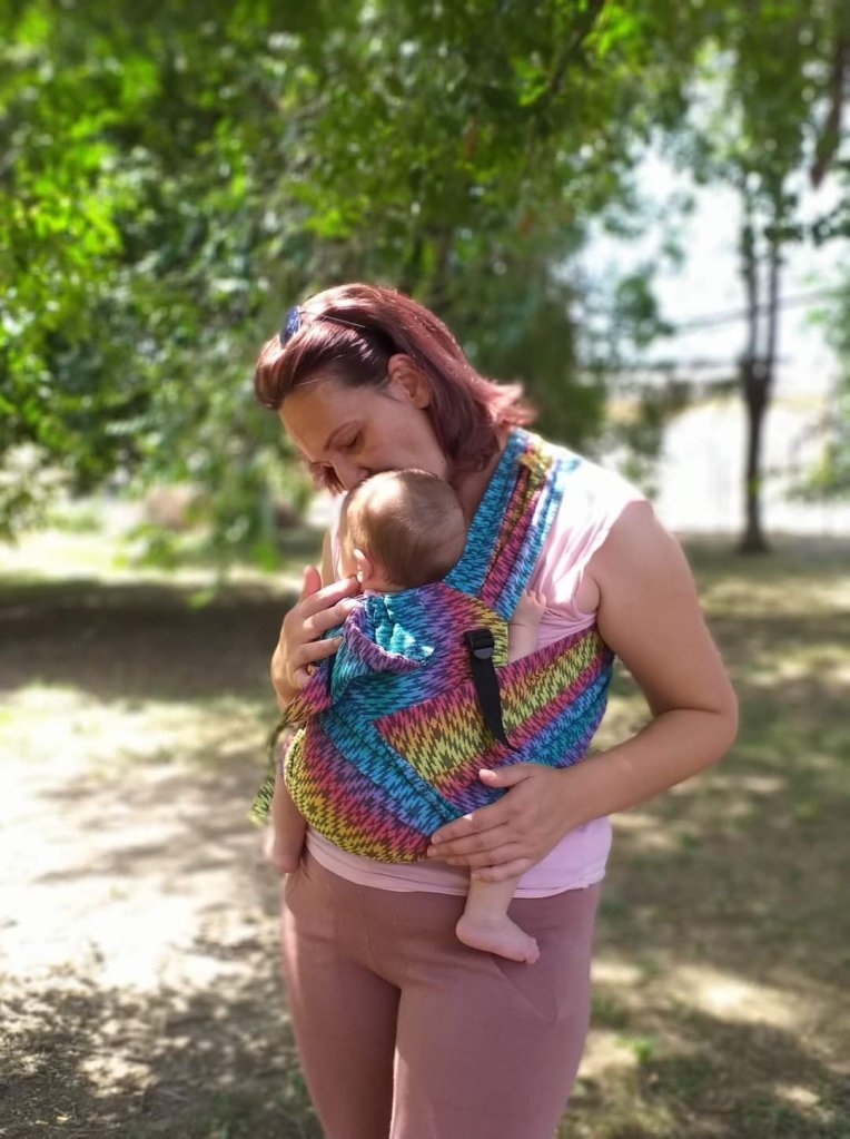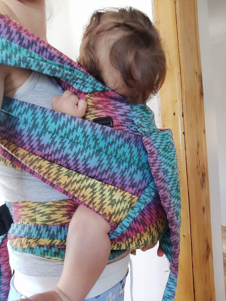 Thanks Lenine putujuce nosiljke (Lena’s traveling carriers) for the opportunity to test Cross hybrid ethno carrier. The baby tester is 7,5m old, 66cm tall and weighs around 7,5kg. This carrier has a really beautiful design and the colours are mesmerising. It fits perfectly with these hot summer days. The belt is firm enough, putting on and adjusting everything is very easy to do.