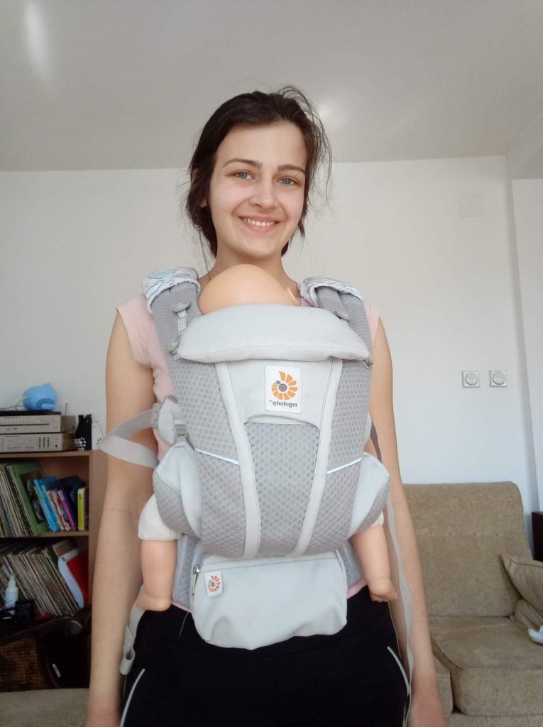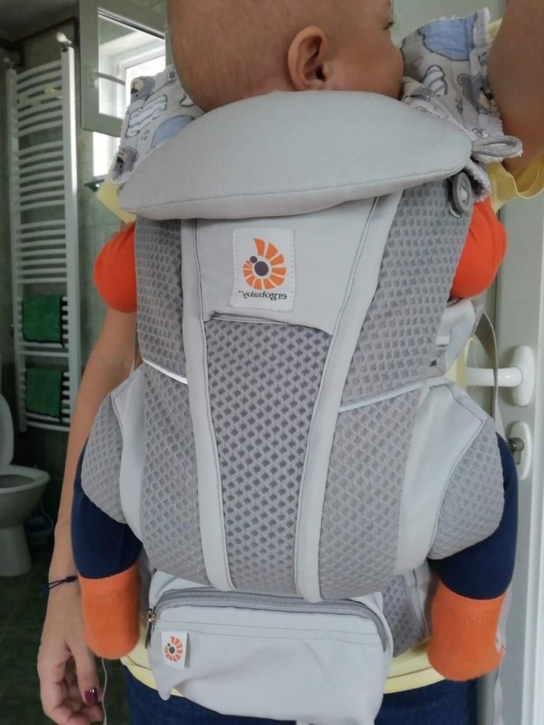 The good thing is that the baby can be in more positions. The baby likes to be turned forward and to observe. We are definitely buying this carrier and I would recommend it to everyone. At the time of testing, baby was 5 months old and had 5.5kg.