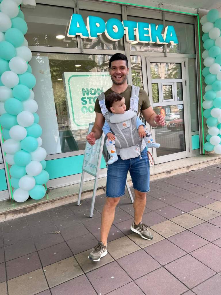 Well…the impression of this carrier in our case is varied. I have to note that the carrier is totally “technical” and that it is made in such a way that it really respects the recommendations for carrying a baby. The belt, because of the part that goes specifically to the boat, is extremely comfortable and stable, but the straps were not comfortable for us. The material from which the carrier is made did not leave us an impression, although I noticed that it is breathable… but regardless of everything, the carrier is very comfortable for the baby. We tried carrying from the front, carrying when the baby is turned and side-carrying. Many thanks to Lena’s traveling carriers for the opportunity to try and test this kind of carrier, but in our case this is not a carrier that we would chose for ourselves. The baby is 14 months old and weighs about 10 kg.