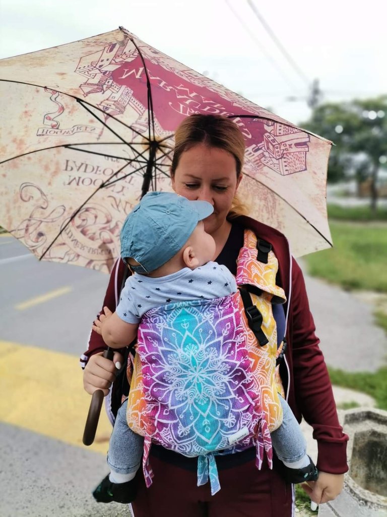 What a wonderful carrier! Thanks to Lenine putujuce nosiljke (Lena’s traveling carriers) and Be Lenka Babywearing we had the opportunity to try this baby carrier. We had a wonderful babywearing experience. The softness and beauty of the carrier are just some of its qualities. My 8-month-old baby liked it a lot because of its colors, and she enjoyed being in it because of the ease of adjustment. She even slept in it. I did not feel the baby’s 9 kilograms while carrying it. I would recommend everyone to try this wonderful and comfortable carrier.
