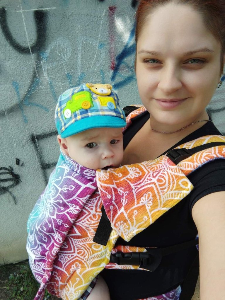 Thanks to Lenine putujuce nosiljke (Lena’s traveling carriers) and Be Lenka Babywearing we had an opportunity to try this Mini Mandala-night SSC carrier in baby size. The design and the colors are stunning.