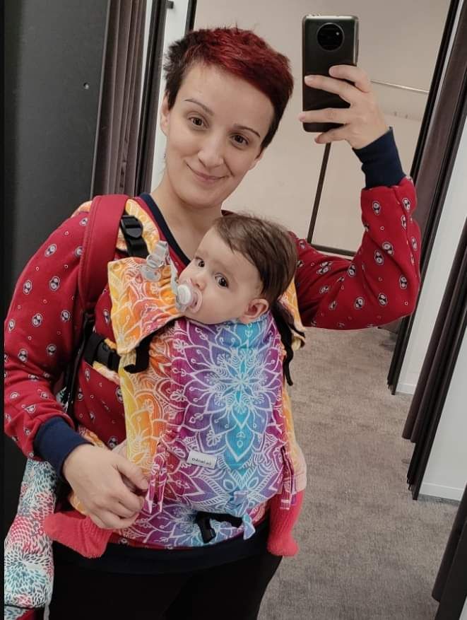 The tester 2: baby 8m, 8kg, 67cm. It was perfect for her 💜 Wide and firm belt, which is a feature I really like in carriers, lovely padded shoulder straps that fit shoulders comfortably. The design and the colours are breathtaking, like I already said, but must say once again 🙂