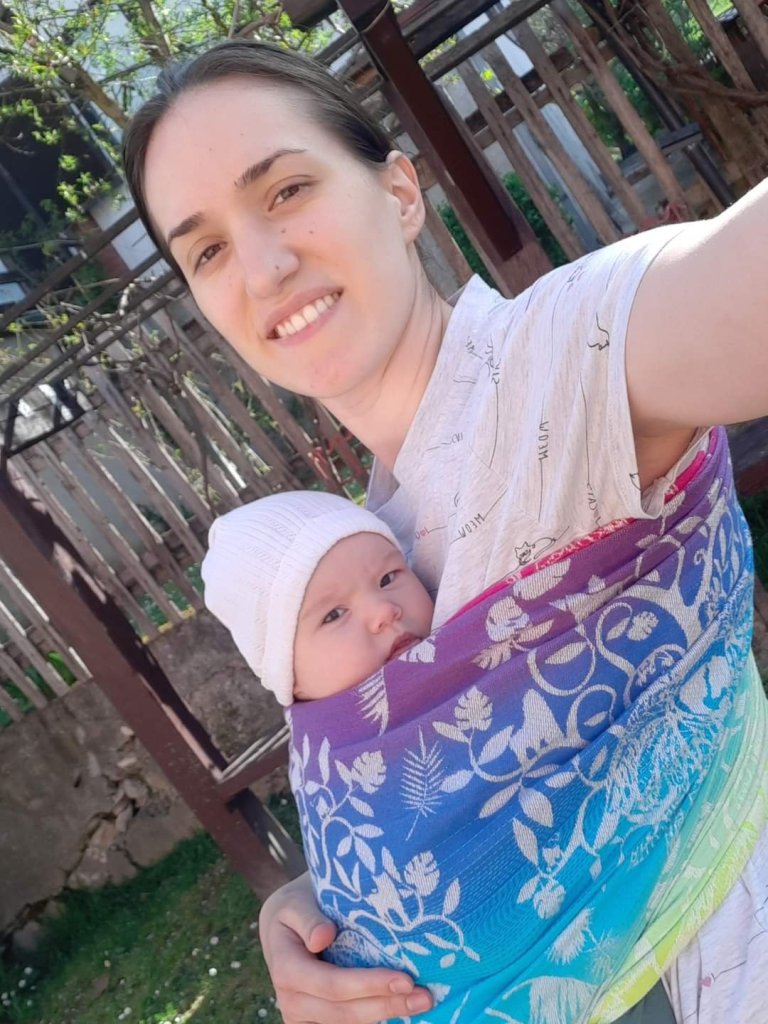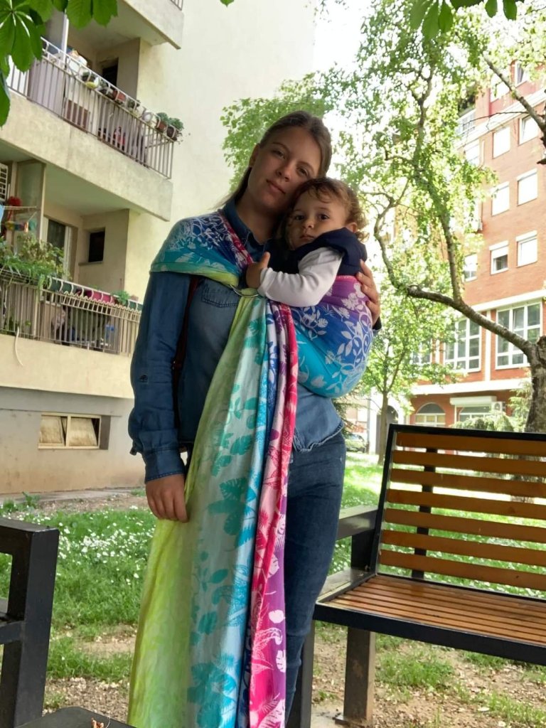 luluna sling is wonderful, bright and fun colors. After a long time, I carried my baby in a sling. He was in a good mood, want to carry and enjoyed it. Too soft and lovely. Comfortable, but not really for the long distance because we weight over 10 kg. His weight put pressure on my shoulder and neck. Honestly all recommendations and thanks Lenine putujuce nosiljke (Lena’s traveling carriers) and Luluna Slings – Tester Group 🤗🥰