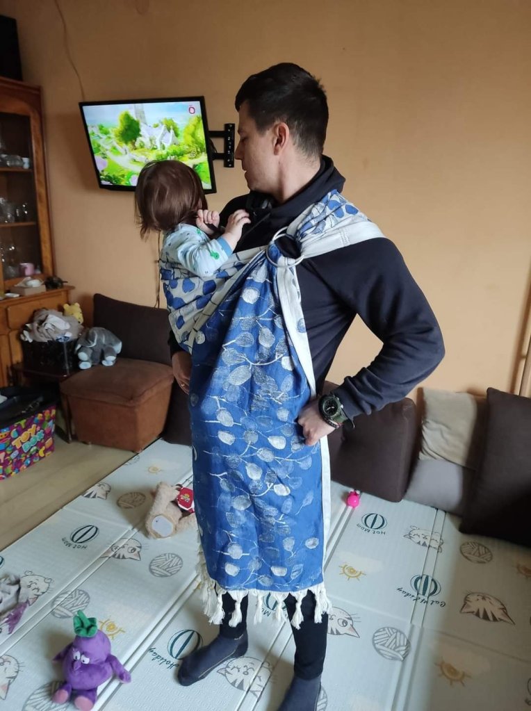 His Majesty’s Ring Sling came to us for testing quite by accident. I was charmed by its beauty, I thought it was a wrap and signed up for testing. Due to my back problems, it is more difficult for me to carry in a sling, but regardless, it was not uncomfortable. Ease of adjustment is an outstanding advantage of slings that I cannot dispute. I fell in love with the design of this RS, I was waiting for it for a long time 💙 and I was not disappointed. My boy is 17 months old and about 10.5 kg, we enjoyed carrying him. We recommend it to everyone for all ages and all seasons. I will not forget its softness and beauty.