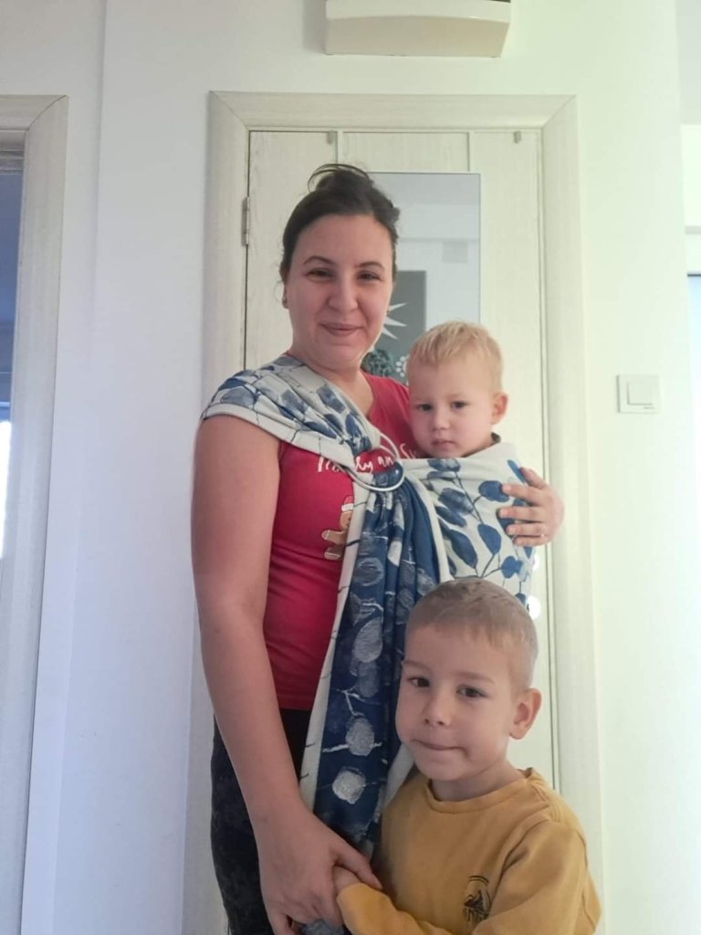 Thanks to lenine putujuce nosiljke I have tested this beautiful ring sling with my 1year old and around 10kg weight,and my 3 year old around 14 kg. Both my baby and I loved it. It perfectly holds her weight and spread it so it felt like a cloud on my shoulder. And also colours are amazing. Thanks again for this great opportunity.