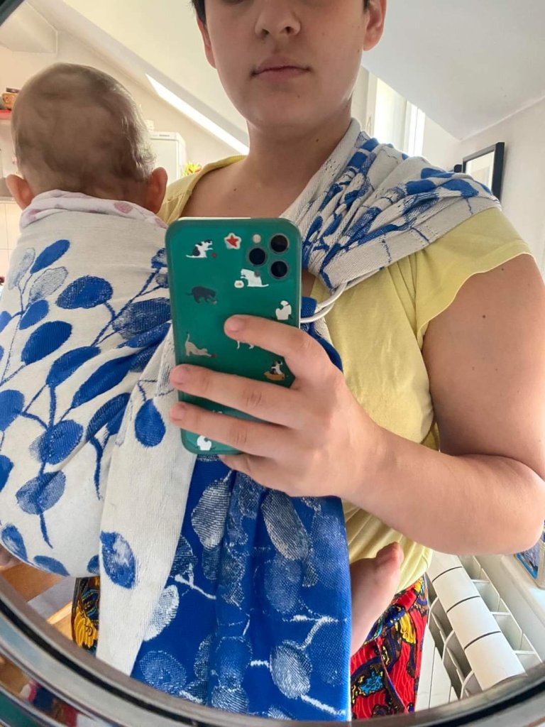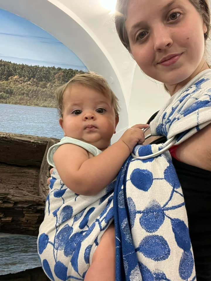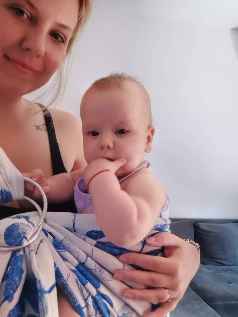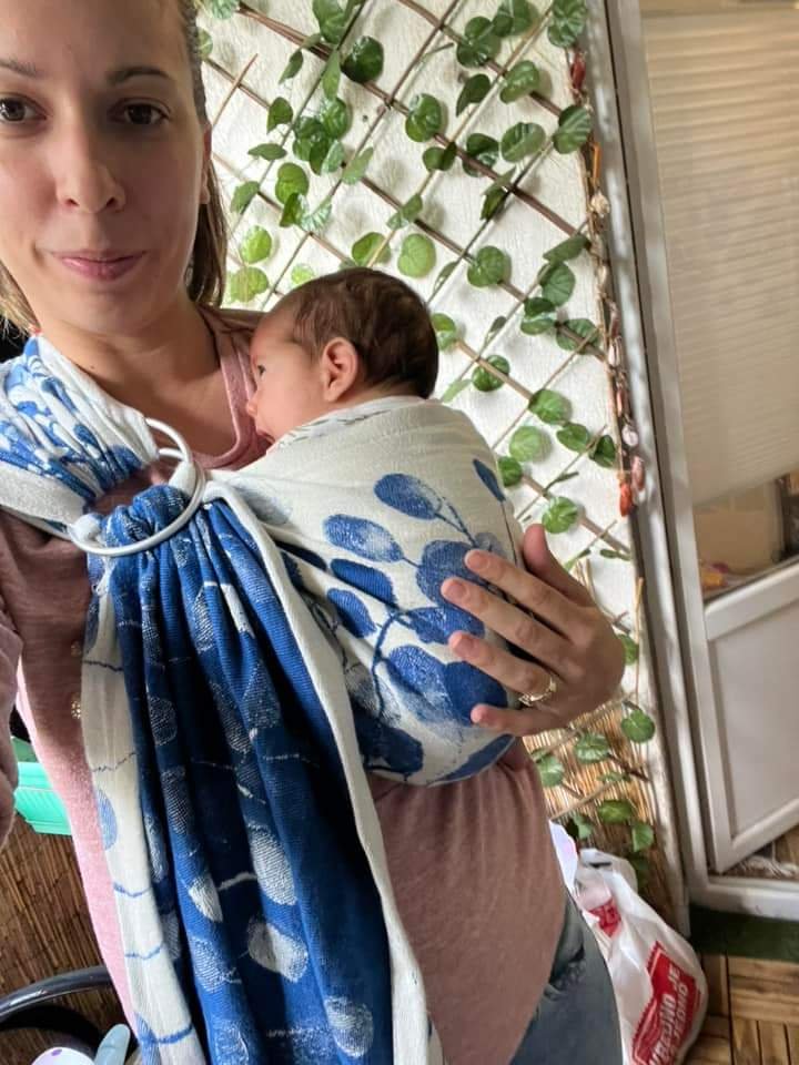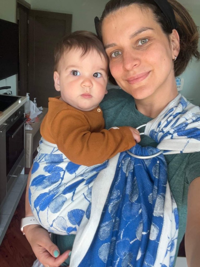 Thanks to Lena’s traveling carriers I had an opportunity to test this stunning ring sling. I am new to babywearing and this was the first time I had tried a RS, but it was super easy to adjust it. The material is soft and thick and it glides perfectly through rings. My baby is 2 months old and around 6kg and she enjoyed being carried around.